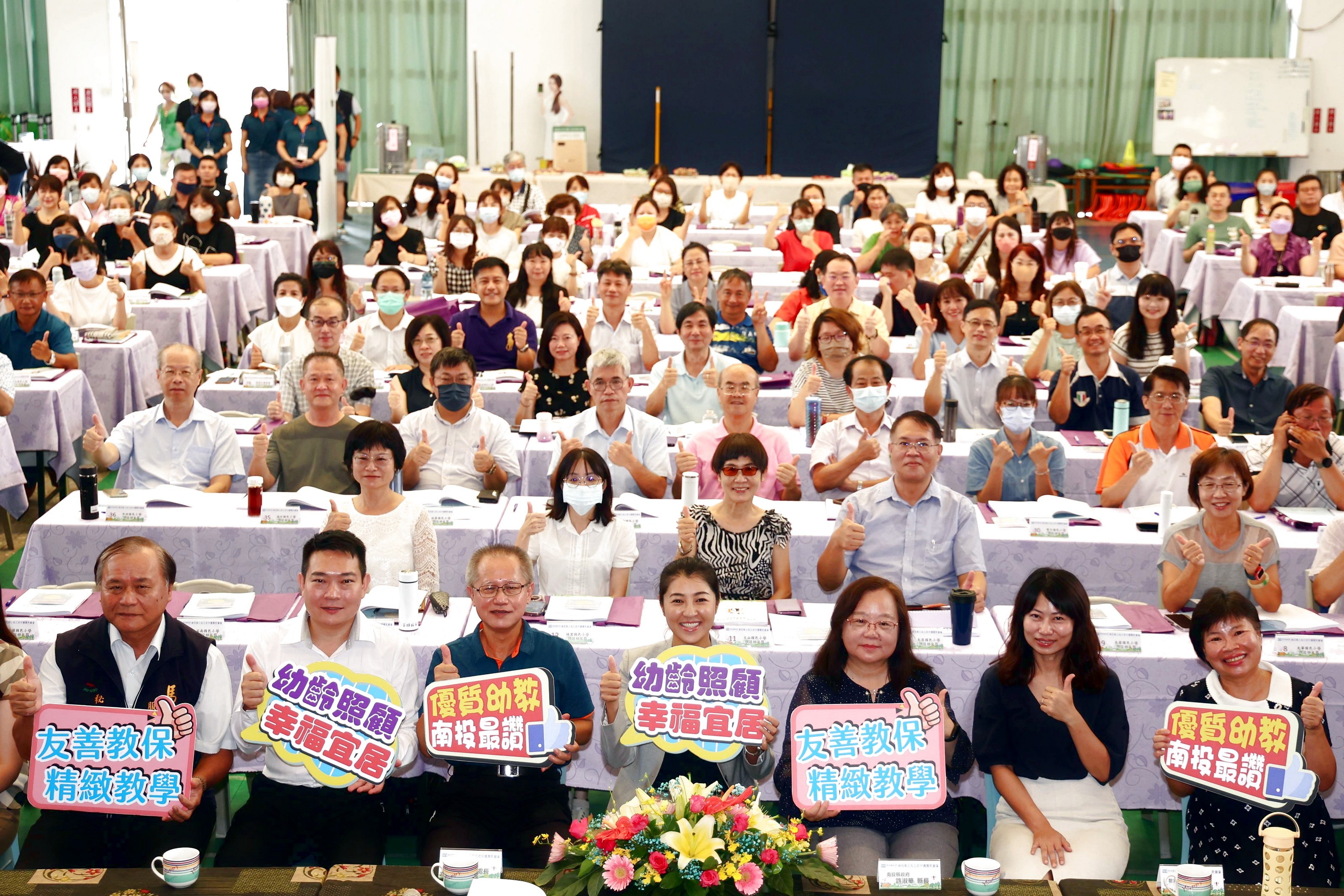 南投縣112年度公私立幼兒園園長會議25日在敦和國民小學舉辦,縣長許淑華頒獎表揚112年度服務績優教保服務人員、服務資深教保服務人員、研究績優教保服務人員、教師教學檔案評選及幼兒學習檔案評選獲獎教保服務人員。許縣長感謝肯定第一線幼教人員的辛勤付出,更強調說,期望透過園長會議建立良好溝通平台,凝聚共識,建構最優質的南投幼兒教育。 南投全縣公私立幼兒園長會議約有190位園長出席,會議安排南投縣政府各局處,就幼兒園環境設施設備維護管理、兒少保護、疾病防治保健,等等攸關幼兒教保實際運作及相關政策,提供最新的資訊與宣導內容。會議也邀請蘇慧菁教授等專家,就「教保相關人員違法事件處理流程與實務」做專題演講,強化園長對違法事件處理相關法令規定的熟稔度及專業知能,期能提升及建構優質、友善、安全的教保環境。 縣長許淑華指出,幼兒教育是教育的起點,也是教育的根基,這次全縣幼兒園長會議特别表揚112年度服務績優教保服務人員、服務資深教保服務人員、研究優教保服務人員、教師教學檔案評選及幼兒學習檔案評選獲獎教保服務人員。非常感谢獲獎的教保服務人員在幼教領域的默默耕耘與無私付出,展現教育热忱,成為幼教界的優秀典範。 許縣長說,每個孩子都是父母心中的寶貝,幼兒的照顧品質深受家長關切,落實幼齡照顧更是打造南投成為宜居城市的重要政見。她上任後,非常重視幼教品質,自112年度起國小附設幼兒園首先降低師生比,並逐步朝3年內全數達成師生比1比12 的目標落實;另一方面也鼓勵、引導私立幼兒園逐年降低師生比,期許公私立幼兒園共同形塑精緻幼教品質,提供孩子更好更全面的照顧,讓家長安心。 為提供優質、平價、近便的教保服務,許縣長說,南投縣政府持續擴展公共化教保服務供應量,112學年度增加121個公共化幼兒園招生名額,協助家長兼顧工作與育兒,減輕經濟負擔;另一方面,強化準公共幼兒園機制,透過公私合作增加平價教保供應量,112學年度已再新增1所私立幼兒園加入準公共幼兒園的行列,全縣共59所準公共幼兒園,簽約比率高達84%,增加家長就近選擇平價優質教保服務的機會。 許縣長說,感謝公私立幼兒園全力協助與配合縣府推動的各項幼教政策,南投縣政府會秉持公私協力、共榮共好的原則,與幼教夥伴們齊心合作,做為南投幼兒教育最堅強的後盾,引領孩子們在安全和友善的環境中快樂學習、幸福成長。 會中,南投縣政府警察局草屯分局把握機會邀請許縣長及所有與會園長、縣府各單位人員,共同宣導「防詐、打詐」的重要性,籲請民眾牢記「冷靜、查證、報警」的反詐騙三步驟,同時大家一起來「保護婦幼、遠離侵害、拒絕性別暴力」,許縣長也呼籲,民眾,若有疑似遭詐騙或需要警政單位協助時,一定要立即撥打165反詐騙諮詢專線或報案專線110。