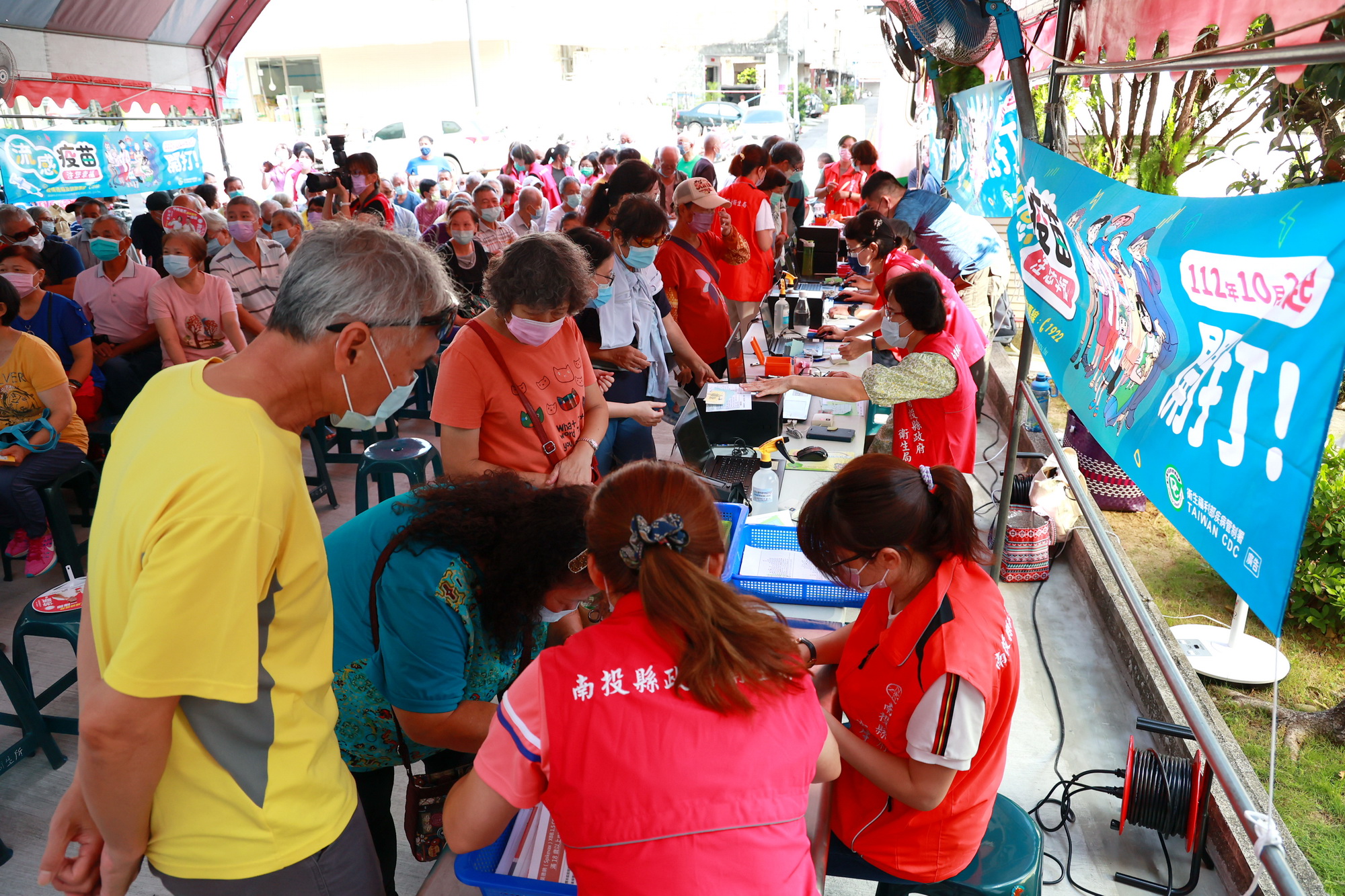 公費流感疫苗10月2日開打,南投市衛生所一大早就湧進大批民眾,尤其是65歲以上長者,更是早早就來衛生所門口排隊等待接種,縣長許淑華特別前往關心民眾接種情形,並呼籲符合公費接種對象的民眾盡速接種,滿65歲以上長者還加送COVID-19家用快篩試劑。