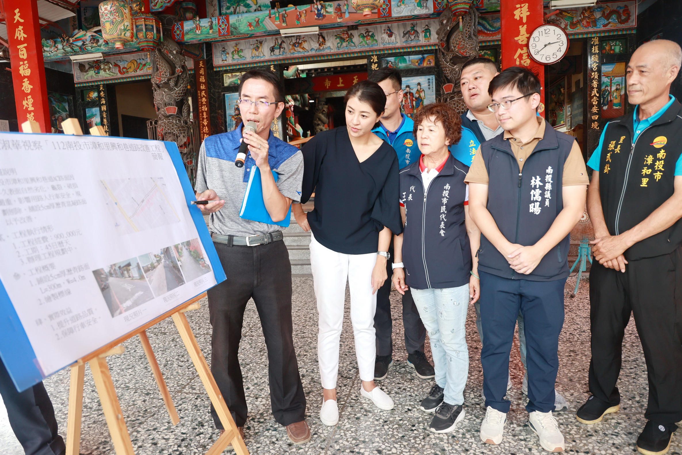 縣長許淑華3日下午繼續會同縣議員林儒暘、游顥、林憶如、吳棋楠、南投市長張嘉哲分別前往南投市平山里、漳和里、營南里、軍功里及草屯碧洲里會勘4處老舊巷道、一處農路、2處區域排水溝改善工程,許縣長逐一仔細勘查,並聽取民眾心聲,7處改善區址現況確有改善必要,指示工務處、農業處、及地政處盡快發包設計改善,其中碧洲里農路先行發包,俟二期稻作收割後再行施工改善,營南里東閔路旁牛路溝護岸毀損有安全之虞,儘快與工務段協調改善,總經費約需792萬9,400元。 許縣長說,南投市有平山里、漳和里及營南里許多巷道都已老舊不堪,路面嚴重破損龜裂,瀝青混凝土老化粒料脫落,還有很多管線施工回填的地方也出現落差,影響社區居民及車輛通行安全,縣府會儘速發包,刨除舊有路面,重新鋪設瀝青混凝土封層。讓民眾行得安全,社區宜居安適,刨除時也會考慮深度,避免重鋪後路面高於住家,造成困擾;平山坑慈善一號橋上游河道雜草叢生,影響環境及排水,會委請南投市公所清理,牛路溝排水東閔路下游護岸高度不足,導致水位暴漲淹沒農地及民宅,確有改善必要,縣府會盡快發包加高護岸,另鄉親反映護岸毀損,也會協調工務段改善,維護鄉親生命財產安全。 漳和里興和巷、平山里彰南路二段568巷、南崗二路425巷周邊道路、營南里南營路都是社區重要聯絡道路,路面都近20年未曾重新刨鋪,路況相當差,車輛通行、社區老人出入及學生通學都相當危險不便,亟待改善,排水溝渠安全也很重要,縣府會盡快發包改善。