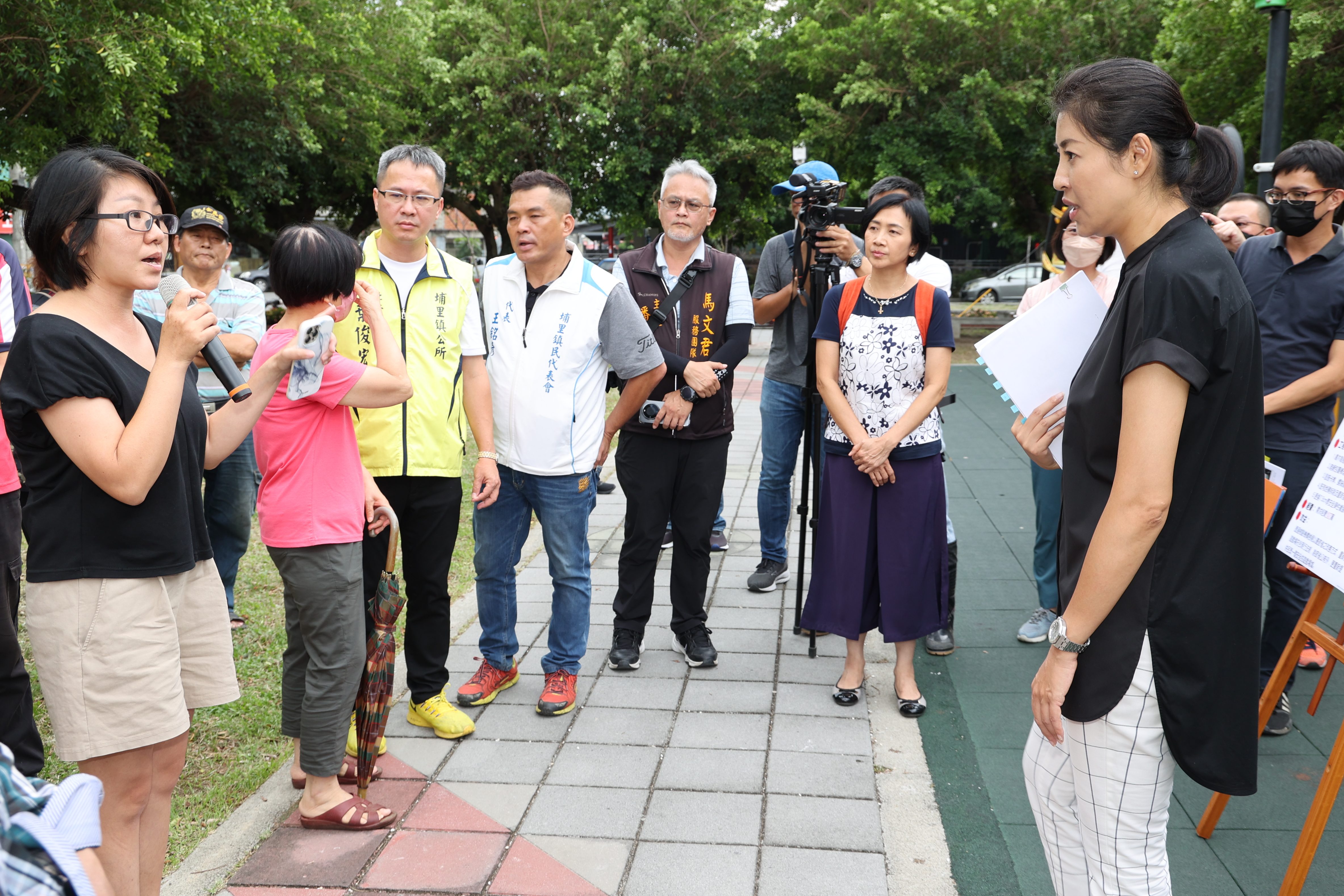 隨後許縣長一行很快趕到北安里北門市地重劃區埔里鎮長壽公園,除簽核107萬元改善因安全規範修訂後不符要求,被迫封閉禁止使用的遊憩設施,在聽取當地里長、家長及婆婆媽媽反映,看到小朋友最愛的玩沙池,不僅沙量很少,還常被亂丟破瓶碎玻璃等危險物品,而婦女朋友最愛聚會練舞的廣場地磚,也因縫隙大又不平,常有跳舞婆婆媽媽絆到險些跌倒,許縣長非常重視這些問題,當場同意將改善經費加碼追加到200萬元,許縣長說,除了將會同鎮公所改善玩沙池安全及改善廣場地磚平整,更會增設活動式遮陽網,讓到公園休憩的老少民眾,能更舒適安全的活動。