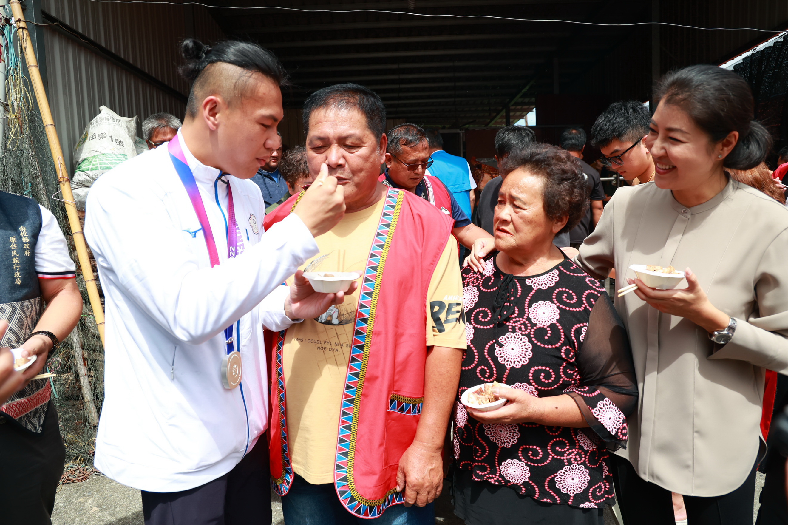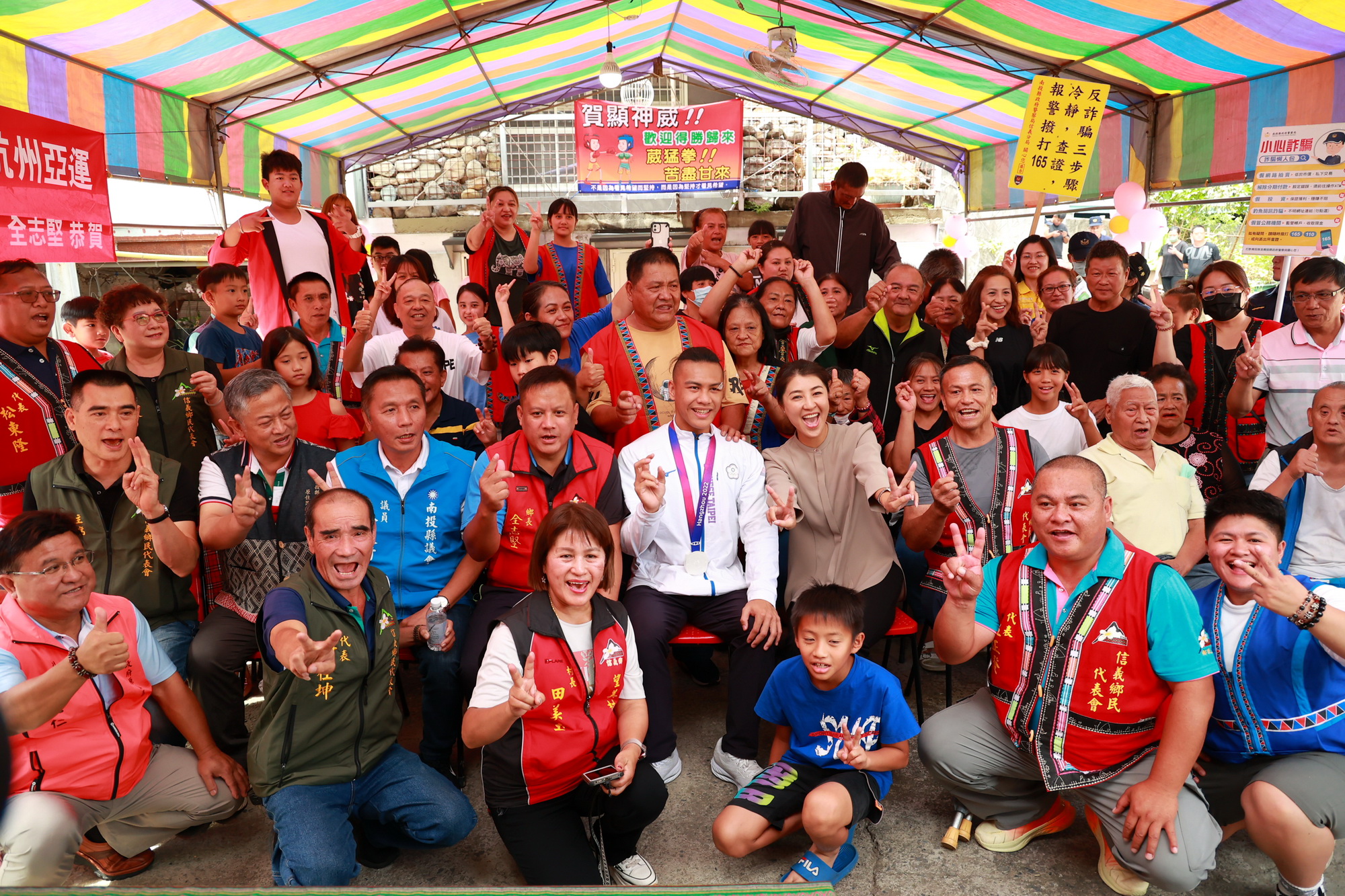來自信義鄉久美部落的甘家葳榮獲杭州亞運男子拳擊71公斤級項目銀牌,縣長許淑華8日上午特別前往甘家頒發獎金給家葳,並以原住民的傳統慶功方式烤大豬來與族人分享喜樂與榮耀,大家也集氣祝福家葳繼續努力邁向奧運金牌之路。
