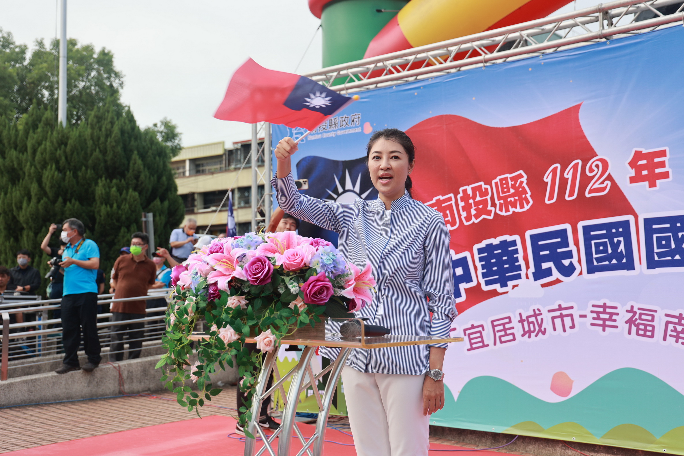 為慶祝中華民國112年生日,縣長許淑華10日8時,帶領縣府團隊、各機關團體及各界代表在南投縣立體育場舉行「宜居城市、幸福南投」南投縣慶祝112年中華民國國慶升旗典禮,熱情民眾自清晨6時就進入會場卡位,還未開場參與民眾就將會場擠爆,縣議員簡千翔、游顥、林友友、廖梓佑、南投市長張嘉哲、集集鎮長吳大村、南投縣後備軍人指揮部指揮官陳建鋒也都到場與民同慶。
