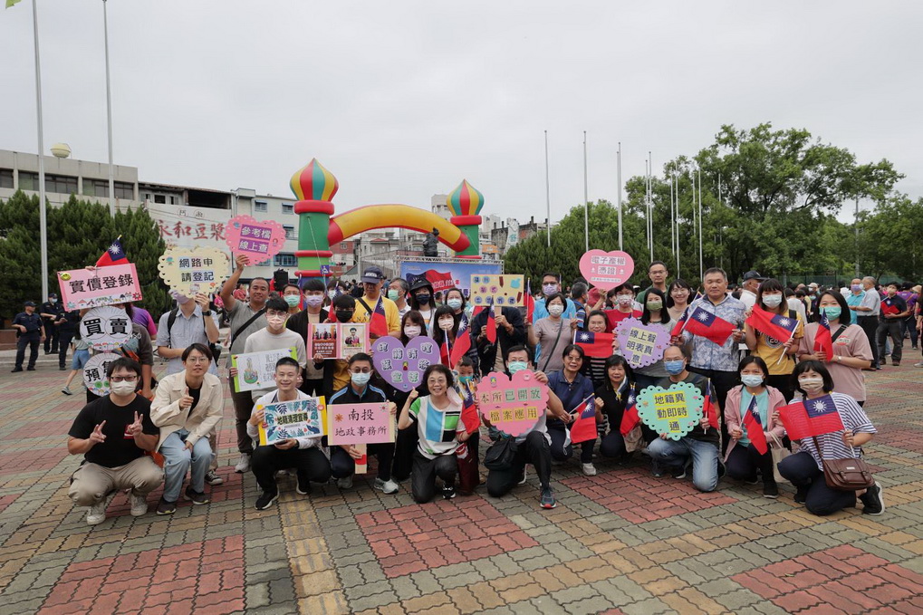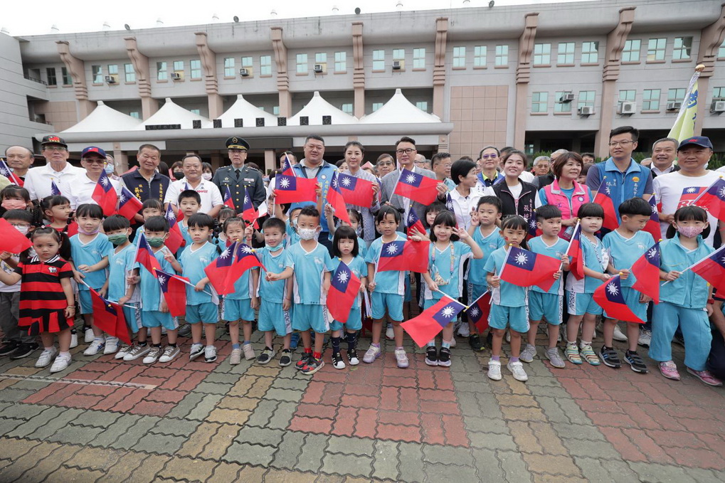 來自南投市的50位幼稚園小朋友及40位新住民,也揮舞著小國旗體驗人生第一次的升旗典禮,展現傳承與族群融合意涵。典禮中,許縣長與民眾在平和國小小朋友領唱下一起高唱國歌,南投憲兵隊旗手也配合三光國中樂隊國旗歌樂聲將國旗緩緩升至最高點,隨後,許縣長帶領民眾齊聲高喊「中華民國生日快樂」,為升旗典禮帶來最高潮,現場氣氛熱烈。