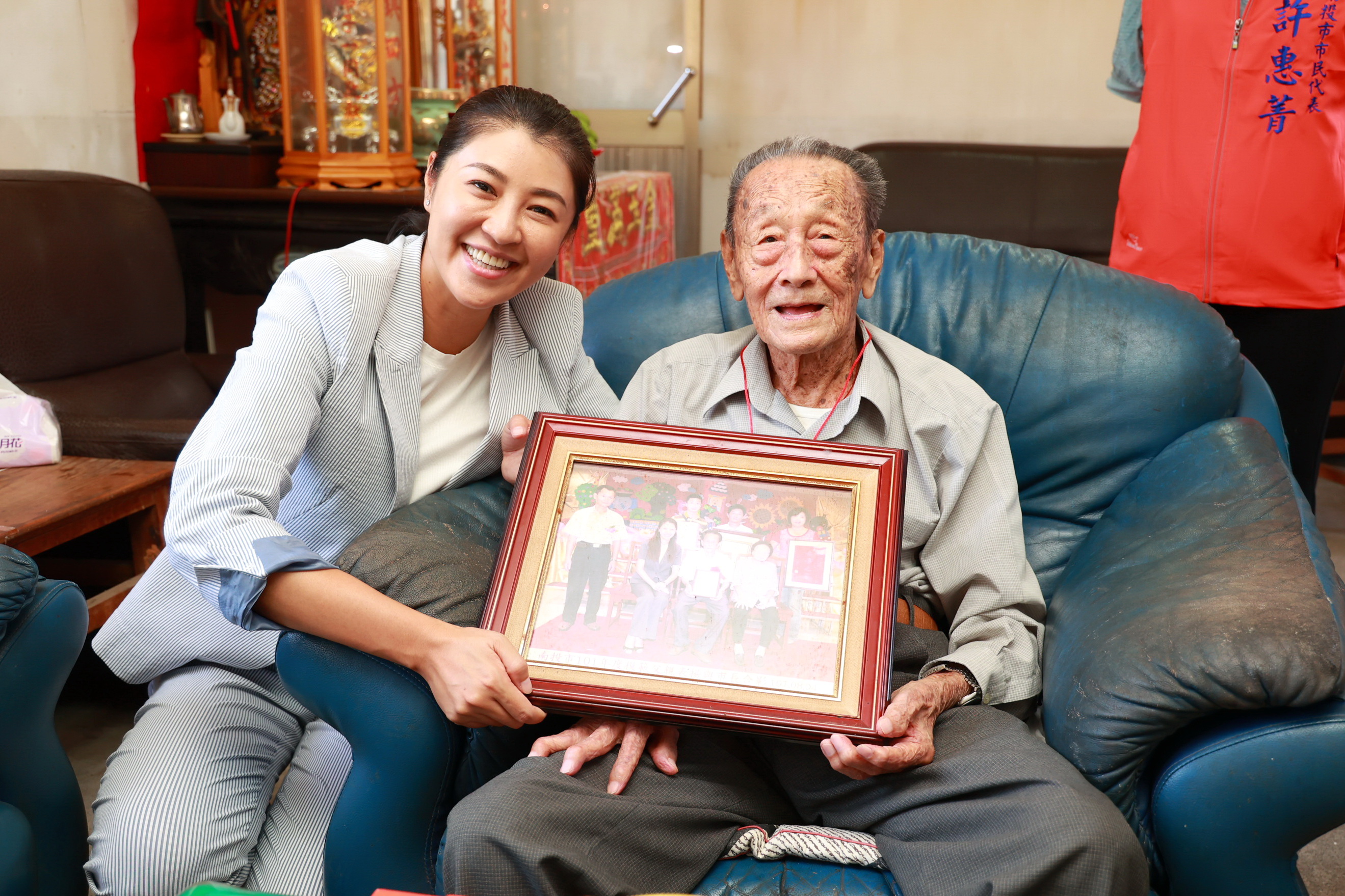 縣長許淑華為表達重陽敬老及對本縣百歲人瑞的祝福,10月13日與縣府社會處長林志忠前往南投市及名間鄉造訪4位百歲人瑞,除致贈每位人瑞1萬元敬老金,並轉贈內政部象徵長壽與福氣的純金鎖片,祝福大家重陽節快樂,許縣長也悉心關心問候生活起居,看到這麼多人來探視,老人家們也都開心滿懷。 許縣長表示,南投縣112年百歲人瑞共有112名,最高齡是110歲住在南投市的陳隨女士,其中剛好滿百歲的則有34名,將可獲頒總統之敬老狀。許縣長指出,在探訪人瑞與老人家對談後,發現他們的家庭都是子孫滿堂、家庭和樂,讓人能感受到福氣滿滿的幸福感,為人子女平時多陪伴照護,長輩自然就會開心,也希望大家都要孝順奉養長輩,讓每位老人家都能健康快樂過生活。 許縣長一行首先來到南投市山上八卦路的胡維德、胡黃燕家裡,兩人皆是高齡102歲,為堂兄嫂關係,胡維德老先生重聽,溝通需手寫,平時由外勞陪伴照顧,他曾於101年獲選南投市模範父親表揚,看到許縣長也還記得她是當年的老市長,看到牆上的老照片,縣長也開心的再次與胡老先生合影。 隨後則是前往南投市彰南路王振下人瑞家中探視,高齡105歲的王老先生身體狀況佳,行動自如,只是耳朵重聽,但每天仍能自行外出去菜園種菜拔草,平時都是兒子在陪伴照顧。 許縣長除為人瑞掛上金鎖片並送上敬老禮金,也邀請人瑞現場打開紅包數鈔票,老人家都能正確地數出金額,逗趣的反應引起哄堂大笑。包括南投市長張嘉哲、鳳山里長許佳明、地方代表也都到場關心。 最後,許縣長一行則是前往名間鄉的新民村探訪高齡105歲的蔡親金,蔡老先生是老榮民,中年後隨著退輔會農場開墾來到南投落腳,育有3男3女,平時由外勞陪伴照顧,看到許縣長等人的到來,開心得合不攏嘴。包括鄉長陳翰立、代表會主席吳金樹及多位地方代表、村長也都到場致贈敬老禮金與禮品。 縣府社會及勞動處表示,南投縣百歲人瑞經統計有112人,其中有7人居住外縣市;依性別區分男性39人,女性73人;女生是男性的1.9倍。縣內各鄉鎮市人瑞中,以南投市有34位人數最多,次為竹山鎮、草屯鎮13人;名間鄉11人;埔里鎮、鹿谷鄉7人;國姓鄉、魚池鄉6人;中寮鄉、水里鄉、信義鄉4人;仁愛鄉2人; 集集鎮1人。