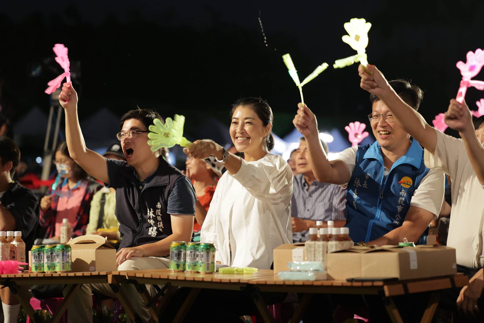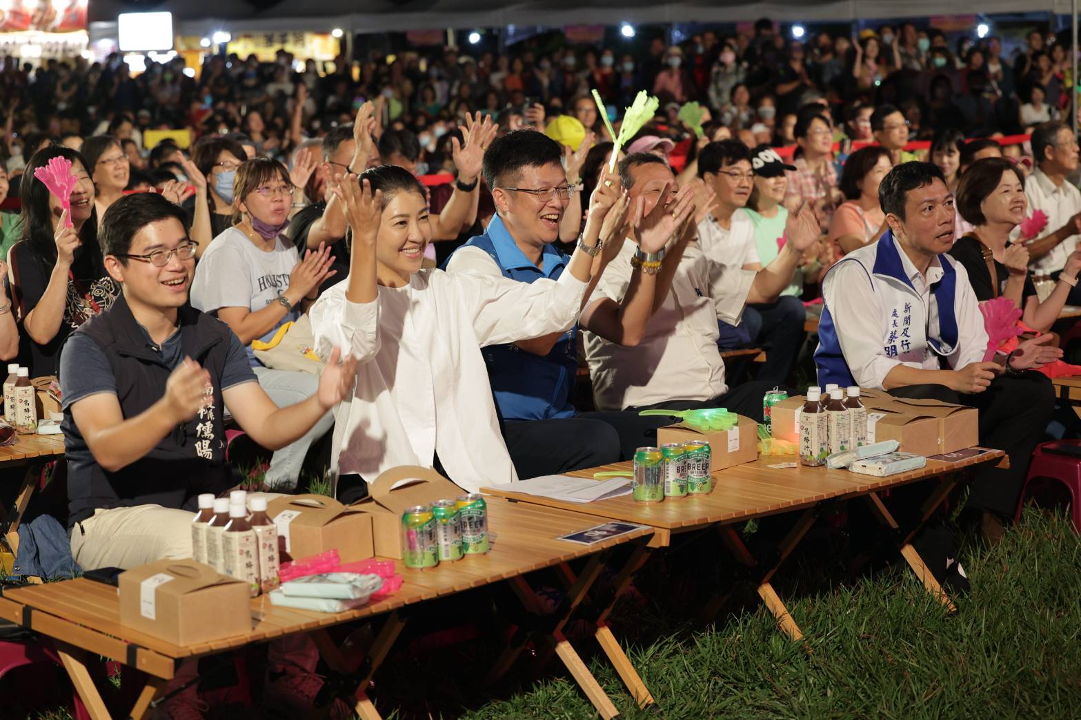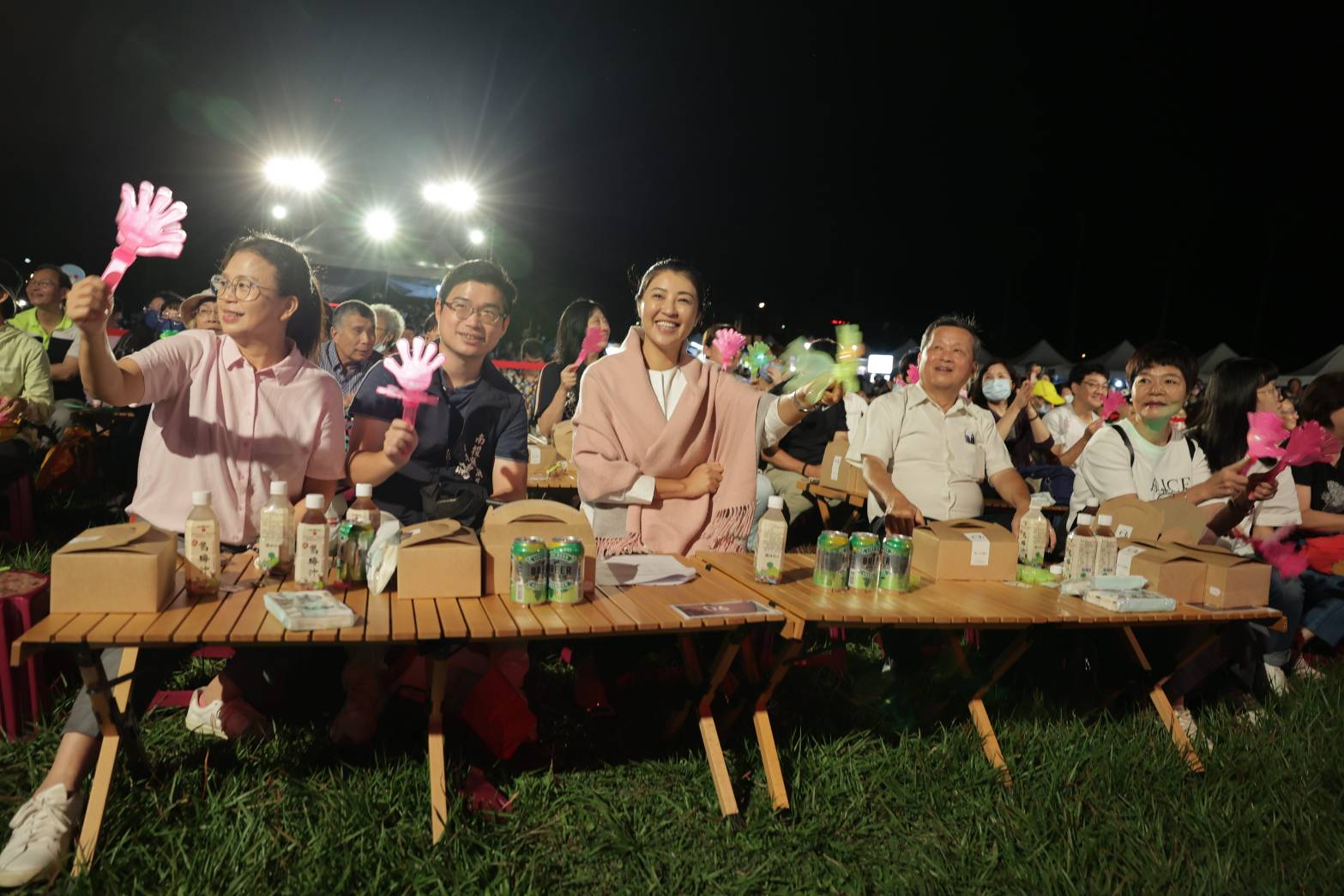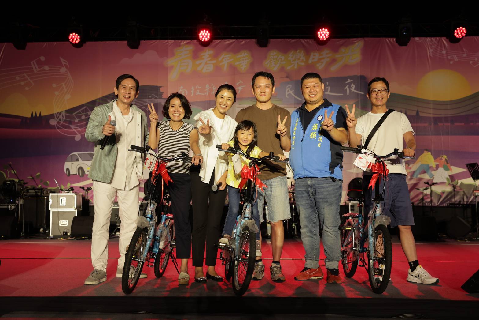 縣長許淑華更在歌王殷正洋高歌後,親切與民眾互動並主持道安有獎徵答,並與縣議員游顥共同現場送出折疊腳踏車,將現場氣氛炒熱至最高點,許縣長還不忘再次宣導防詐打詐的重要性,並開懷的預告「邀請大家明年再來合唱」!