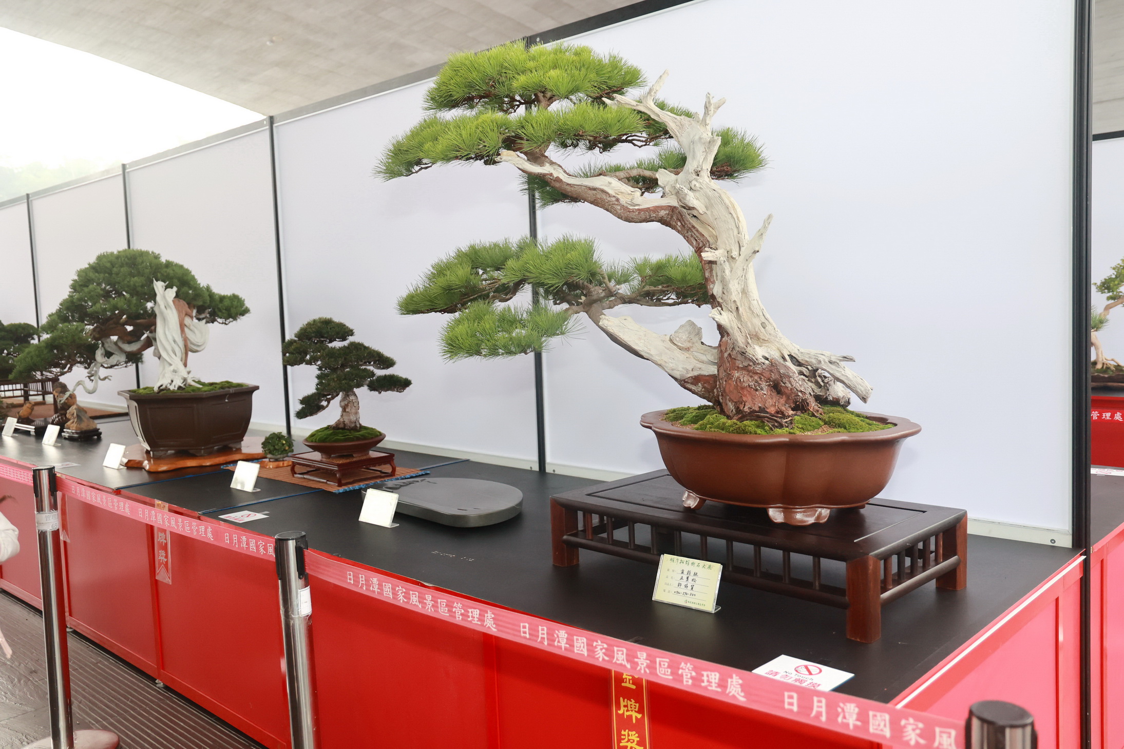 2023南投縣樹石雅品學會第22屆樹石創作盆栽展21日下午在日月潭向山活動中心盛大舉行開幕儀式,由該會理事長許振益主持,縣長許淑華兼任榮譽策展主委、縣議員石慶龍、黃世芳、魚池鄉長劉啟帆出席致意,並和到場貴賓一同剪綵,過程熱鬧隆重。 許縣長說,該會自民國74年創立迄今已近40年,會務蒸蒸日上,以「推廣樹石藝術、創造文化產業」為宗旨。會員致力於以盆栽、雅石、石茶盤、石烏龜、石太極及造型五葉松等創作,作品造型巧奪天工,精巧多趣,令人目不暇給,每次展出都吸引許多愛好樹石藝術同好前來欣賞品鑑,此次展出作品包括造型庭木及各式盆栽百餘件;早期大埔里地區產出的龜甲石及黑膽30件;石雕作品及石雕茶盤60件,共計約200餘件,都是不可多得的作品,今年再次結合魚池鄉紅茶文化季,品茶賞樹石,更增添一分雅趣。 許理事長表示,近四十年來,每年十月都會定期展出會員作品、分享創作成果,自民國102年結合「日月潭紅茶季」活動,在向山遊客中心展出樹石藝術作品,迄今已10個年頭,感謝全國12個友會及樹石前輩前來共襄盛舉。此次展出的樹石藝術盆栽作品超過百件,有大型盆栽、大品盆栽、中小型盆栽三大類,呈現縮小版大自然生態景緻,其中五葉松與真柏盆栽造型巧奪天工,加起來總樹齡超過千歲,是一大特色。石頭類亦分雅石、石盤、石雕等類別,值得您細細品味流連。 樹石創作盆栽展期自從10月21日至25日止,白天都可觀賞。配合紅茶季活動,21日、22日有園遊會及茶席,21日晚上更有花火施放。展出期間若有導覽需求,可向服務處約詢,讓觀眾更方便融入樹石藝術。