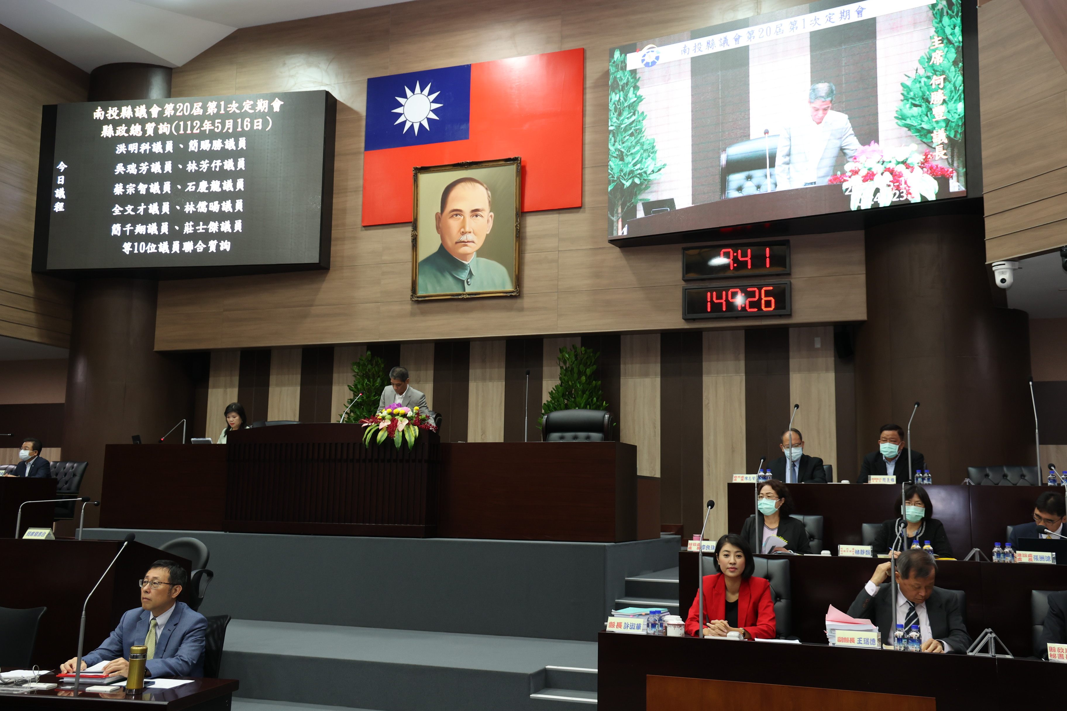 南投縣議會第20屆第1次定期會16日開始縣政總質詢,簡千翔、林儒暘、林芳伃、吳瑞芳、莊士傑、簡賜勝、蔡宗智、全文才、石慶龍、洪明科等議員,針對青年住宅、新市鎮開發、國民運動中心、普設共融公園、拓展停車空間及落實停車收費新制、警所合署辦公復原、普設社區監視器、工程土方回填堆置安全及落實長照證照等議題關心質詢。