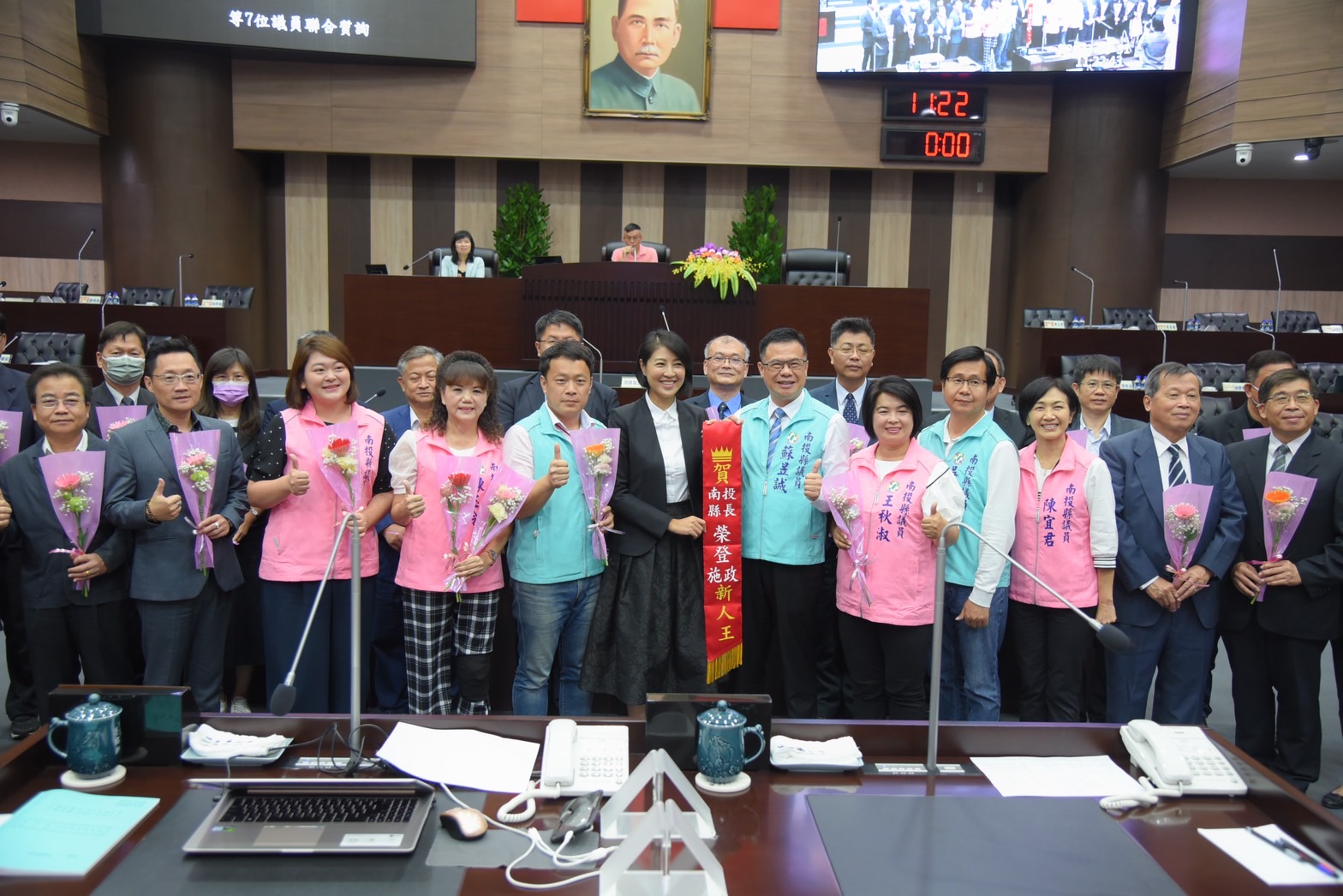 南投縣議會定期會最後一天總質詢,縣議員肯定縣府團隊表現,除了贈送許淑華縣長「榮登施政新人王」彩帶,也送上鮮花給縣府首長,並高喊「宜居城市、南投加油!」許淑華縣長表示,議會是督促縣府重要力量,期待共同合作,創造南投更好未來。 南投縣議會第20屆第一次定期會,31日由縣議員蔡銘軒、王秋淑、陳宜君、吳棋楠、蘇昱誠、陳玉鈴、沈夙崢等人進行縣政合質詢,議員並針對遠見民調結果進行探討。 會議一開始,蘇昱誠有備而來表示,遠見雜誌公布縣市長施政民調,南投縣長許淑華表現突出,拿下64.2%的滿意度及70.8分的施政分數,都是新上任縣市長第二高,榮登新人王。他除了表示恭喜,也製作彩帶致贈許淑華縣長。 隨後,縣議員也針對遠見雜誌民調,探討環保垃圾、醫療等問題,希望縣府檢討改進,隨後議員們也在定期會結束前,致贈鮮花給縣府一級主管,並高喊「宜居城市、南投加油!」盼縣府團隊再接再厲,努力為縣民打拚。 許淑華縣長表示,這次定期會,議員提出的建言和指導,主要包括垃圾問題,如何透過獎助學金留才等,如同遠見雜誌發布的民調資料,而且各項評比當中,觀光給予很高的評價,許淑華縣長認為,這要歸功於前縣長林明溱的努力。 許淑華縣長說,民調中,民眾最不滿意的垃圾問題,給縣府一個努力方向,會努力來落實解決,議員也提出關於鄉鎮垃圾按機制優先處理的問題,縣府也會一併探討。她特別要感謝縣民,在她就任短短幾個月時間,給予的肯定和鼓勵,她會和縣府團隊共同努力,也感謝縣議員用心,議會是督促縣府重要力量,期待大家共同合作,創造南投更好未來。