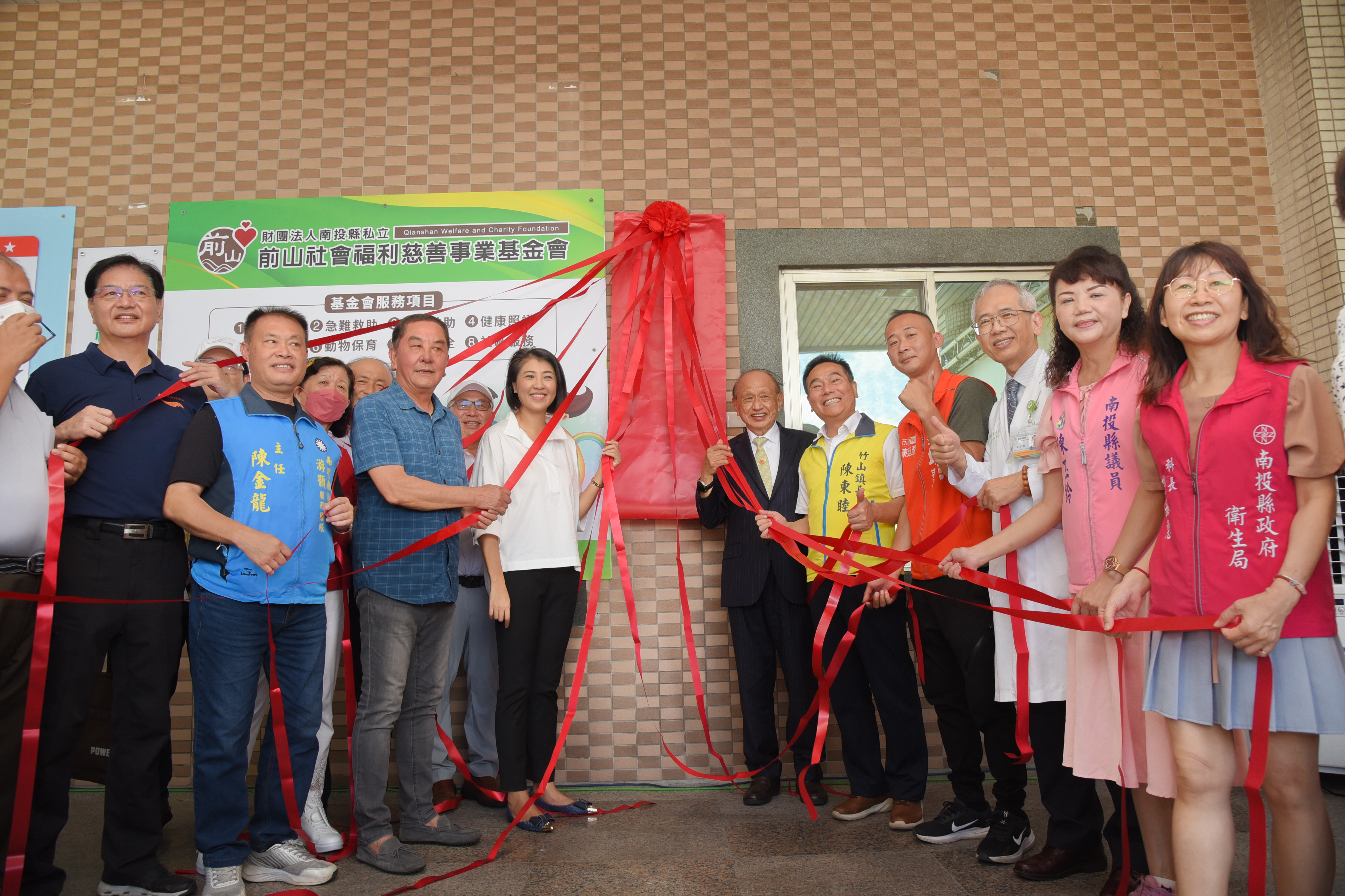 南投縣前山慈善基金會揭牌,20日上午在竹山秀傳醫院舉行活動,並由全國社區評鑑卓越獎的竹山富州社區長輩以熱情的活力操揭開序幕,包括南投縣長許淑華、竹山鎮長陳東睦、縣議員游顥、陳玉玲、秀傳醫療體系營運長陳秀珠、竹山秀傳醫院院長莊碧焜等人與會。
