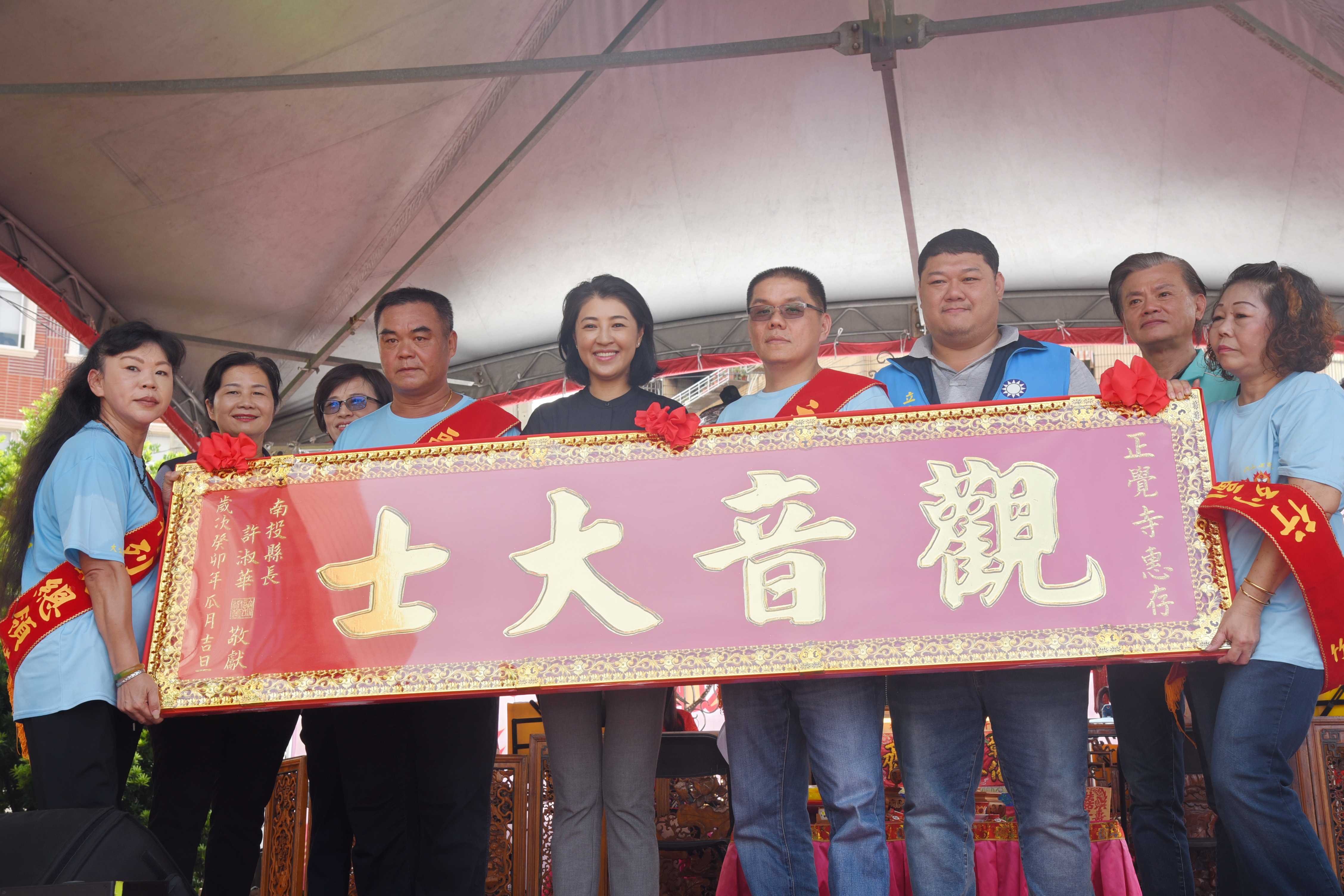 香火延傳165年,竹山正覺寺大士爺文化祭7日登場,縣長許淑華為活動開鑼、贈匾,同時藉由活動布施弱勢,發揚宗教精神。一連三天的竹山大士爺文化祭,不但天天都有摸彩活動,許淑華也大力行銷竹山宗教觀光,希望透過晚會、市集及攤位,邀請民眾品嚐竹山蕃薯、竹筍特產等美食,了解產業與宗教文化。  竹山大士爺文化祭,熱熱鬧鬧展開,從大禮路到大明路口、三角圓環沿前山路至大明路口,都是活動會場,為了創造活動特色,活絡地方產業,活動規劃美食街及攤位,安排各種節目,包括網紅表演等等,活動期間消費美食、文藝產品等達100元即贈送摸彩券1張、200元2張,以此類推,文化祭3天,天天都有摸彩活動,獎品豐富,就是要讓竹山熱鬧起來。  正覺寺供奉觀音大士。許淑華說,觀音大士庇佑眾生,透過大士爺文化祭,她希望經由市集、晚會或是攤位等方式,讓更多人體驗竹山美食,了解宗教文化之美,宗教和觀光產業結合,活動相得益彰。  竹山正覺寺觀音大士,祖廟位於嘉義民雄,正覺寺是祖廟認証「第一分靈」,香火延傳至今165年。鑑於嘉義民雄大士爺祖廟,每年三天文化祭,吸引30萬人造訪,萬人空巷場面熱鬧;為帶動產業發展,竹山也推動大士爺文化祭,希望發展宗教觀光。  正覺寺管理委員會主委籃志文表示,觀音大士神跡靈驗,時常托夢於鄉里百姓指點迷津,並於每年農曆七月廿三日聖誕千秋,觀音顯聖度化眾人,稱號有「觀音佛祖」、「觀自在」、「觀音大士」等,而大士爺亦為觀世音菩薩化身,是農曆七月普渡時的主角,榮稱為「普渡公」、「大士爺」。  縣議員游顥表示,感謝縣長許淑華支持竹山大士爺文化祭,文化祭可說是竹山活動指標,盛大程度,彷彿過年,歡迎各界到竹山遊玩。  竹山大士爺文化祭,吸引目光。許淑華縣長在活動開鑼同時,代言政令宣導,呼籲全民反詐騙,民眾遇到詐問題撥打165。
