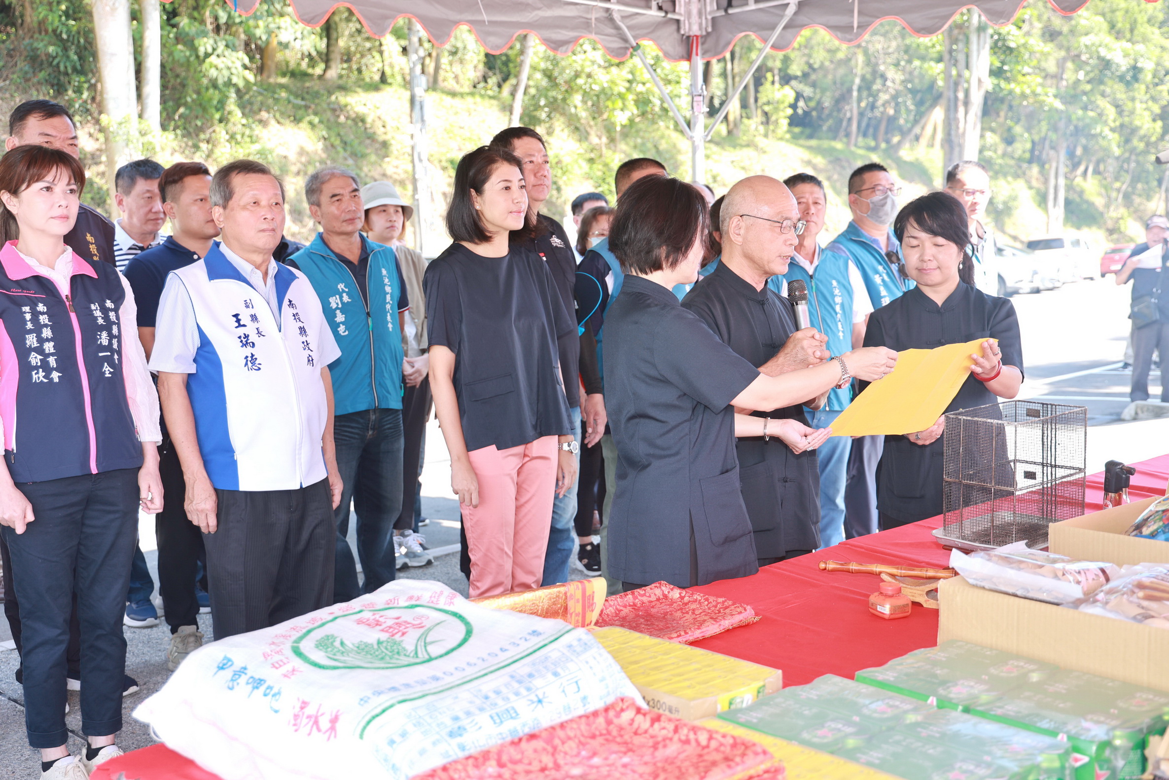 祈福儀式循往例由玄義宮法師引領科儀祭拜,在眾人虔誠上香後,依序由許縣長行三獻禮,再由法師恭稟疏文後,許縣長點燃疏文上達天聽,眾人行三躹躬禮,祭儀圓滿禮成。