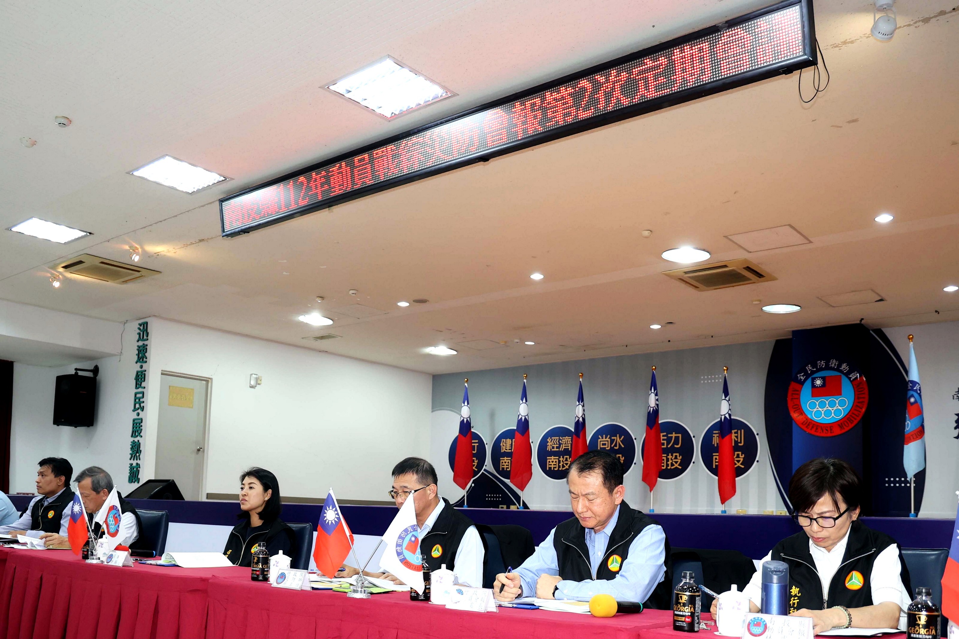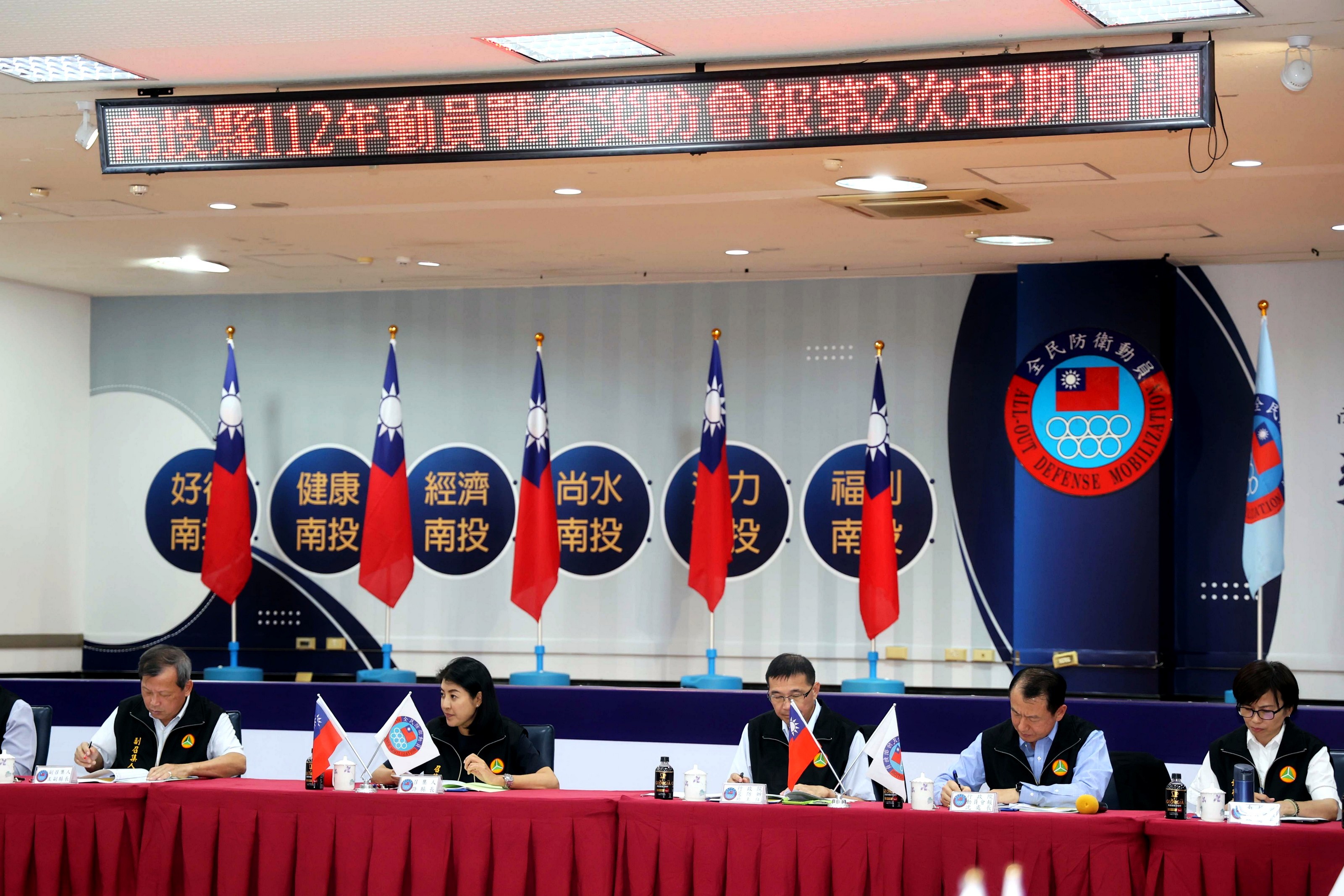 112年南投縣全民防衛動員、全民戰力綜合協調、災害防救3合1會報第2次定期會議,19日在南投市公所大禮堂舉行,由會報召集人的縣長許淑華親自主持,並特別重點提示,務請縣府團隊整合近期風災應變搶險救難的經驗,讓上至中央下至公所村里及諸多協勤單位,都能透過兵棋推演、實際操練演習,加速熟練防救災的各項準備與作為, 雖然希望各項演練備而不用,但一旦災害發生絕對就要立即全面動員,從容不迫迅速確實的投入救災及復建。 112年南投縣全民防衛動員、全民戰力綜合協調、災害防救3合1會報第2次定期會議,包括副召集人副縣長王瑞德、行政院動員會報沈威志處長、行政院災防會報吳武泰主任、臺閩戰綜會報邸再欣上校及中區戰綜會報、南投縣後備指揮部、縣府各局處長都出席,南投市長張嘉哲也列席。 許縣長指出,今天的動員、戰綜、災防會報三合一會議中,狀況推演針對災害應變中心開設及預防性撤離等等狀況確實逼真的兵棋推演,縣府各單位及各協勤單位都展現專業準備與確實迅速的反應,相當可喜,除了災害應變防救的動員,在台海局勢詭譎之際,更需要全民防衛動員及全民戰力綜合協調的充足整備與訓練,才能在任何大家不樂見的危急狀況發生時,南投縣公私部門都能有效動員,務求確保縣民生命財產損失降到最低。 許縣長表示,南投縣幅員大、山區多,過去遭逢921地震受災的慘烈仍歷歷在目,防災救災的技術、能量、警覺及整備都特別重要,縣府需要和中央、公所村里及諸多協勤單位充分配合,透過縣內動員、戰綜、災防的三合一演練,相信一定能進一步提升南投縣災害防救及防衛動員及戰綜整備的周延性及全面性。