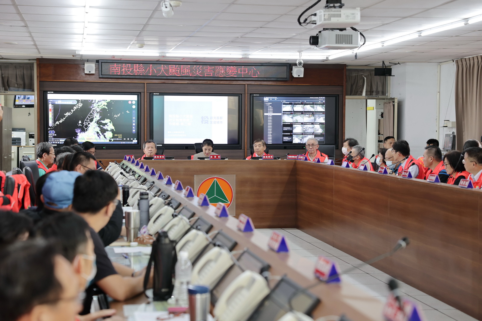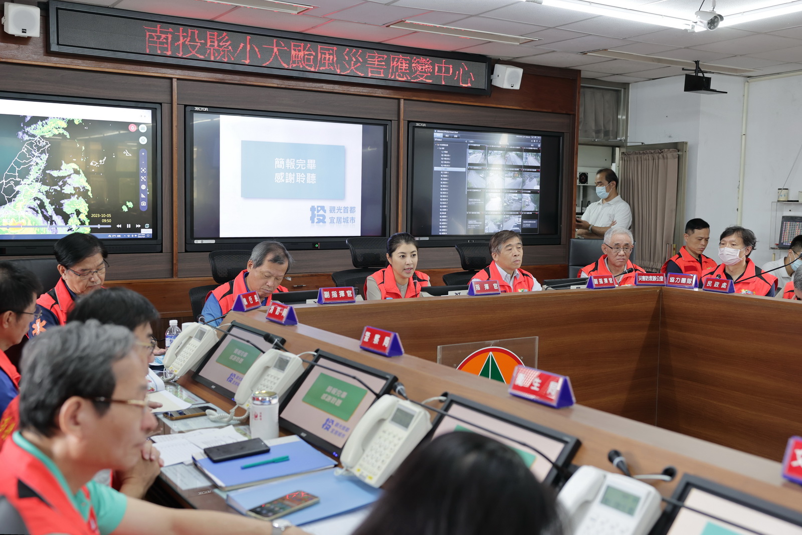 小犬颱風來襲,全國多數縣市停班停課,縣府災害應變中心一級開設嚴陣以待,縣長許淑華5日上午到災害應變中心聽取簡報。許縣長表示,目前除了零星路樹倒塌已處理完畢,南投縣尚無災情傳出;南投世界茶業博覽會將於7日正式登場,希望颱風對南投的影響降到最低,讓全國朋友安心到南投遊玩,欣賞南投美景,品嘗南投好茶。