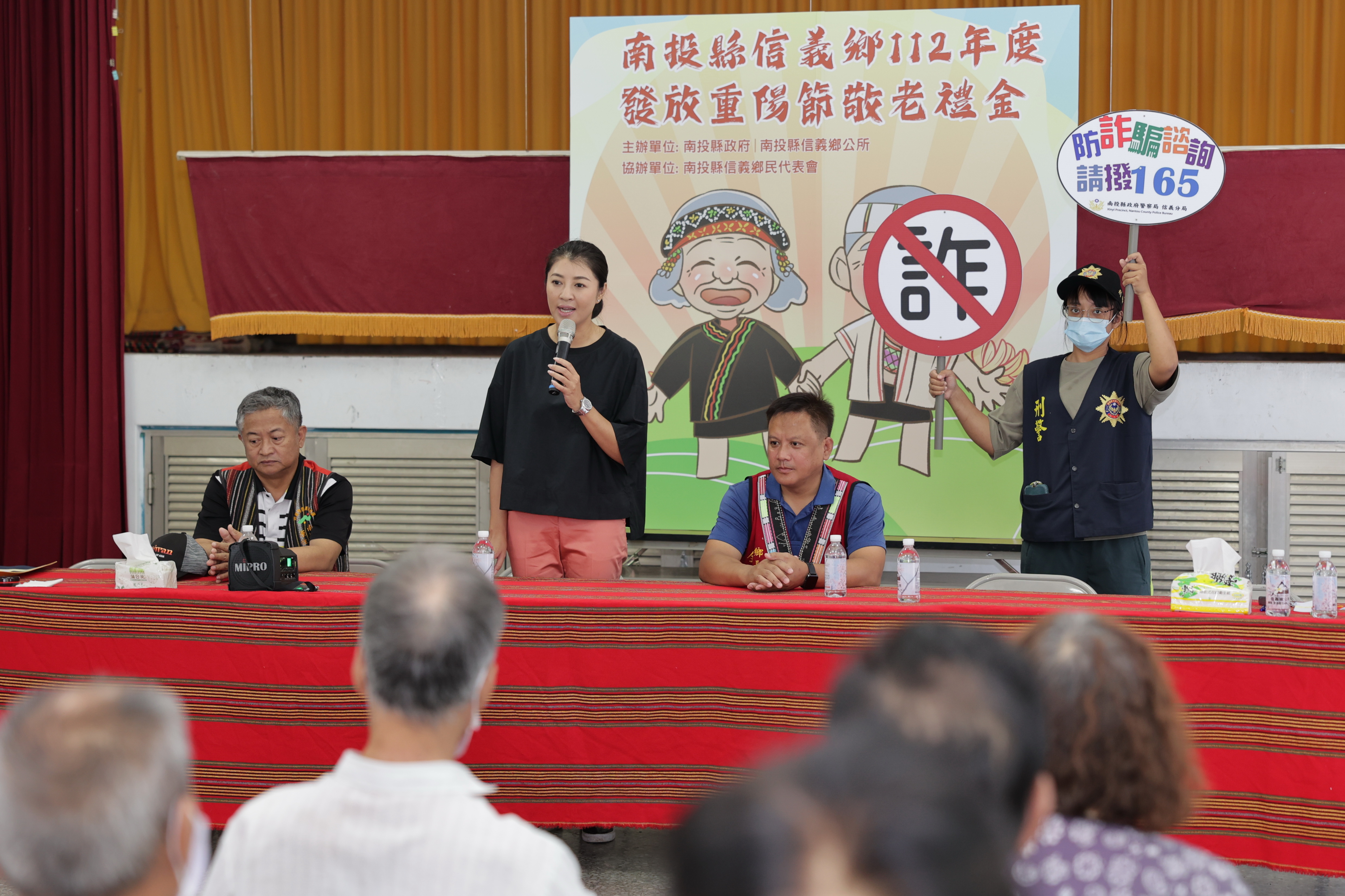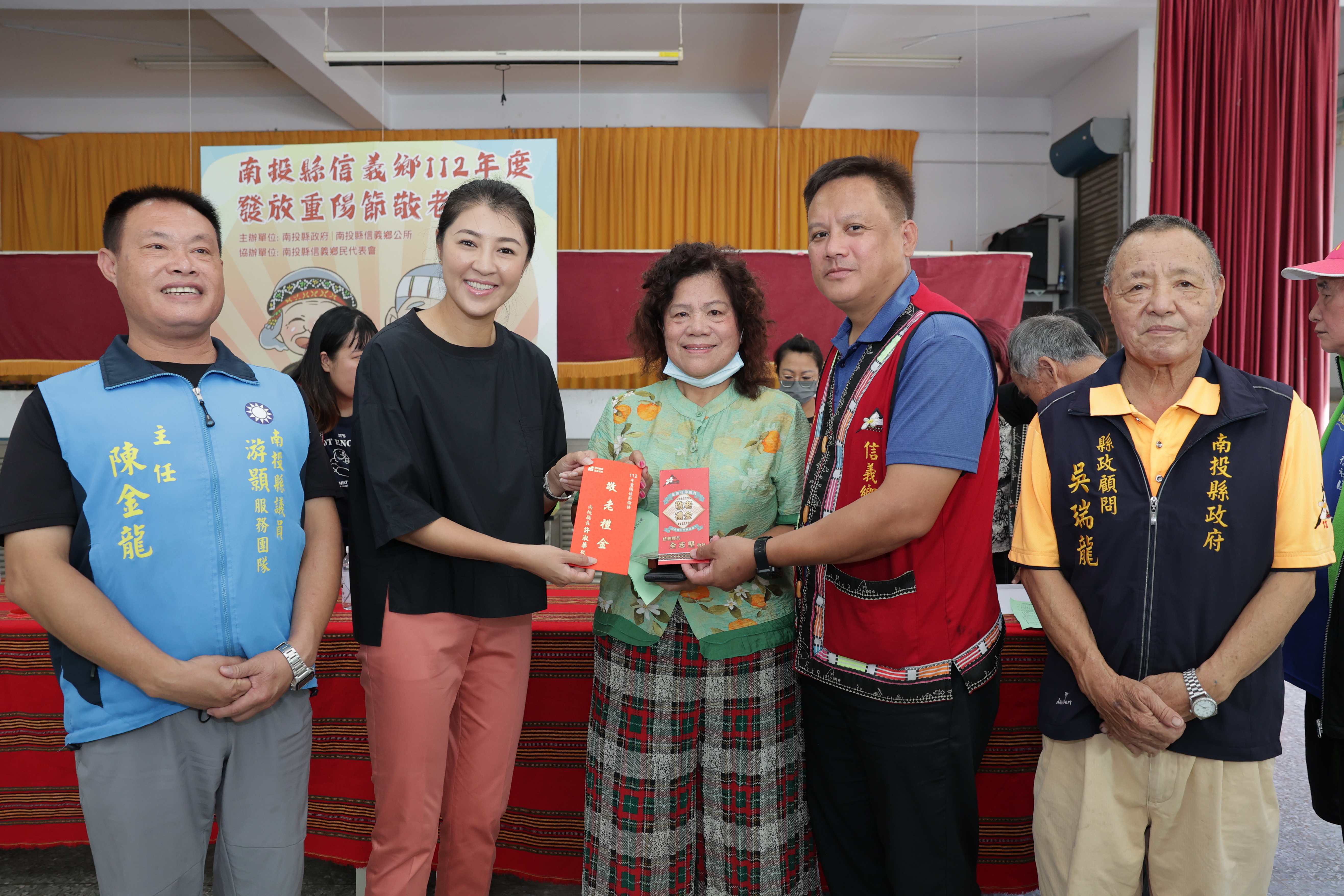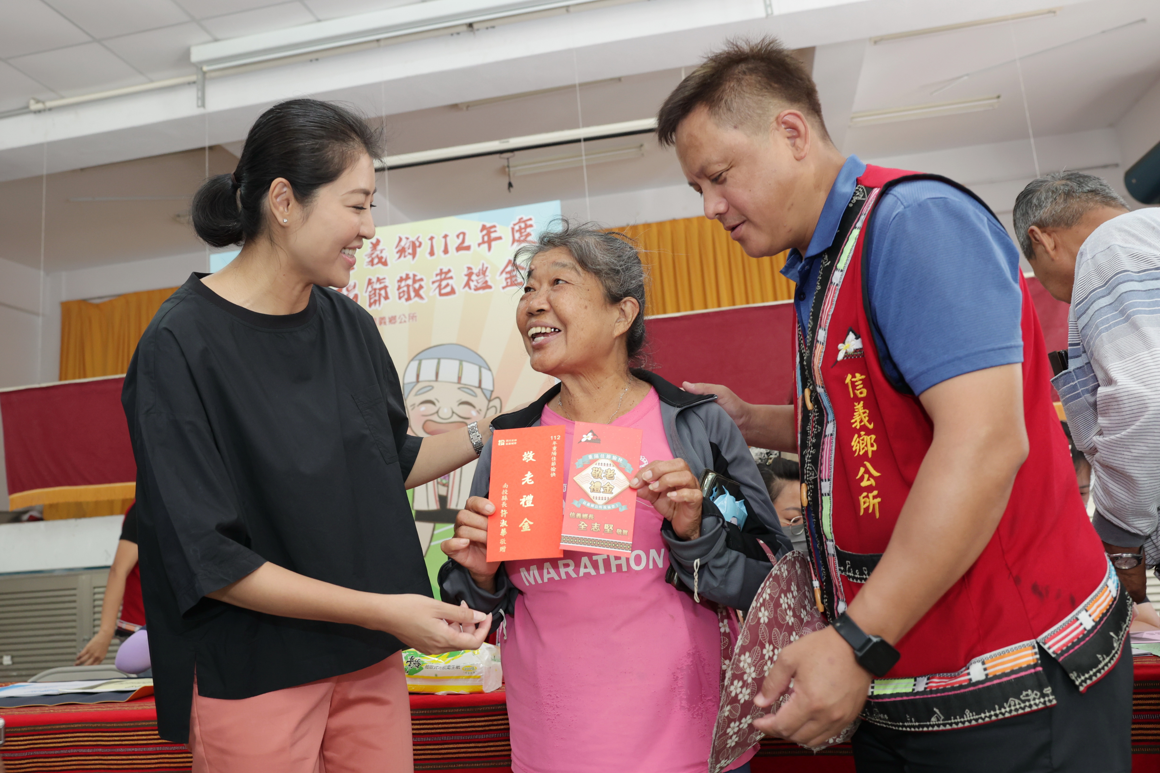 重陽節將至,為關心縣內長者,縣府6日起發放重陽敬老禮金,縣長許淑華11日與信義鄉長全志堅至信義社區活動中心,親自發放敬老禮金給明德村65歲以上長者及60歲以上原住民長者,並關心大家的健康,收到禮金的長輩都十分開心。   縣府統計,今年預估發放年滿60歲至64歲原住民約有1,666人,每人發放500元整;年滿65歲至99歲長者約有9萬7,554人,每人發放1,000元整,另百歲人瑞約107人,每人發放1萬元整,估計發放禮金約9,945萬餘元。   此次發放禮金為明德村,該村共有398位長輩符合禮金發放資格,此次現場領取的有187人,包括65-99歲長者162人、60-64歲原住民長者25人;另一半長者則採匯款方式。   長者容易被詐騙集團當作目標,許縣長也與警察局信義分局人員一同宣導,大家若接到可疑電話,務必要親自詢問家人狀況,並撥打165反詐騙專線或110報警。隨後許縣長也在縣議員游顥陪同下,前往信義鄉公所,發放風災慰問金給受災戶。   許縣長表示,23日是重陽節,偏鄉大多數長輩仍以農為生,特地與全鄉長一同發放重陽禮金,向辛苦的長輩表達祝福之意,也提醒大家工作之餘注意身體健康;她說,家有一老如有一寶,希望子女都能時時孝順父母,讓長輩在友善環境中快樂生活,縣府將持續提升交通建設及社會福利,讓更多長者感受到政府的關愛。   游議員說,許縣長與全鄉長平時對長輩的福利與社區照顧都非常用心,積極推動長照及社會福利,此次更親自到場發放重陽禮金,讓長者備感重視,感謝許縣長的用心。   全鄉長說,感謝許縣長親自到信義鄉發放重陽禮金,關心老人福利,公所因應縣長政策,將65歲以上老人的重陽禮金提高到1,000元,加上縣府的1,000元,長者總共能領到2,000元;90歲以上新增5,000元的敬老津貼,種種政策都是為了讓年長者感受到縣長的關心,祝福所有長者重陽節快樂。   縣府自105年度起,放寬重陽敬老禮金發放對象,年齡由75歲調降為65歲,107年起凡65歲至99歲每人禮金調增至1,000元;;另為照顧原住民族長者,自109年起,增發設籍本縣年滿60歲至64歲原住民每人禮金500元。