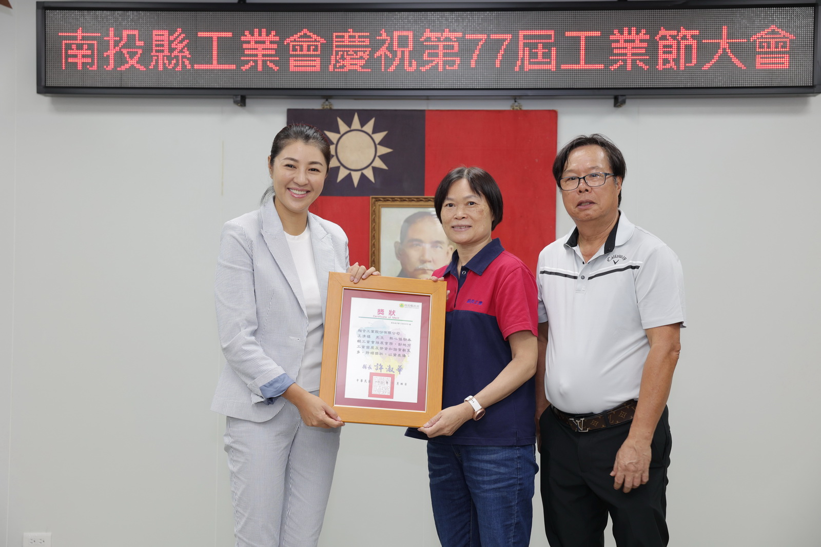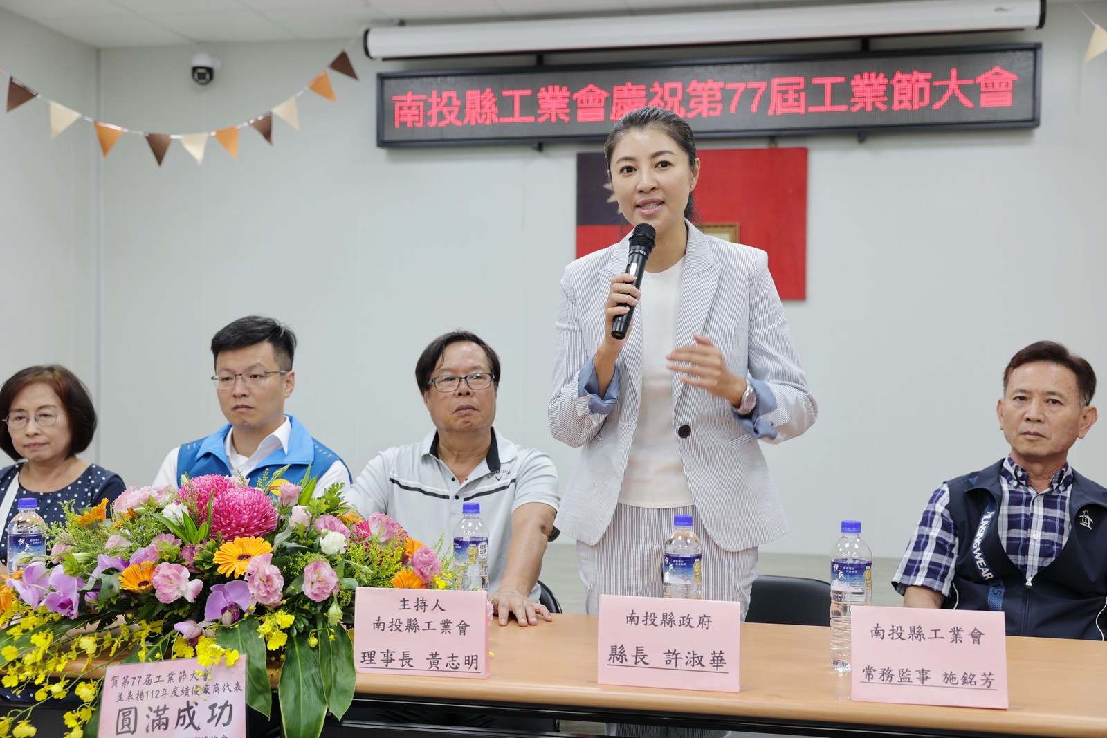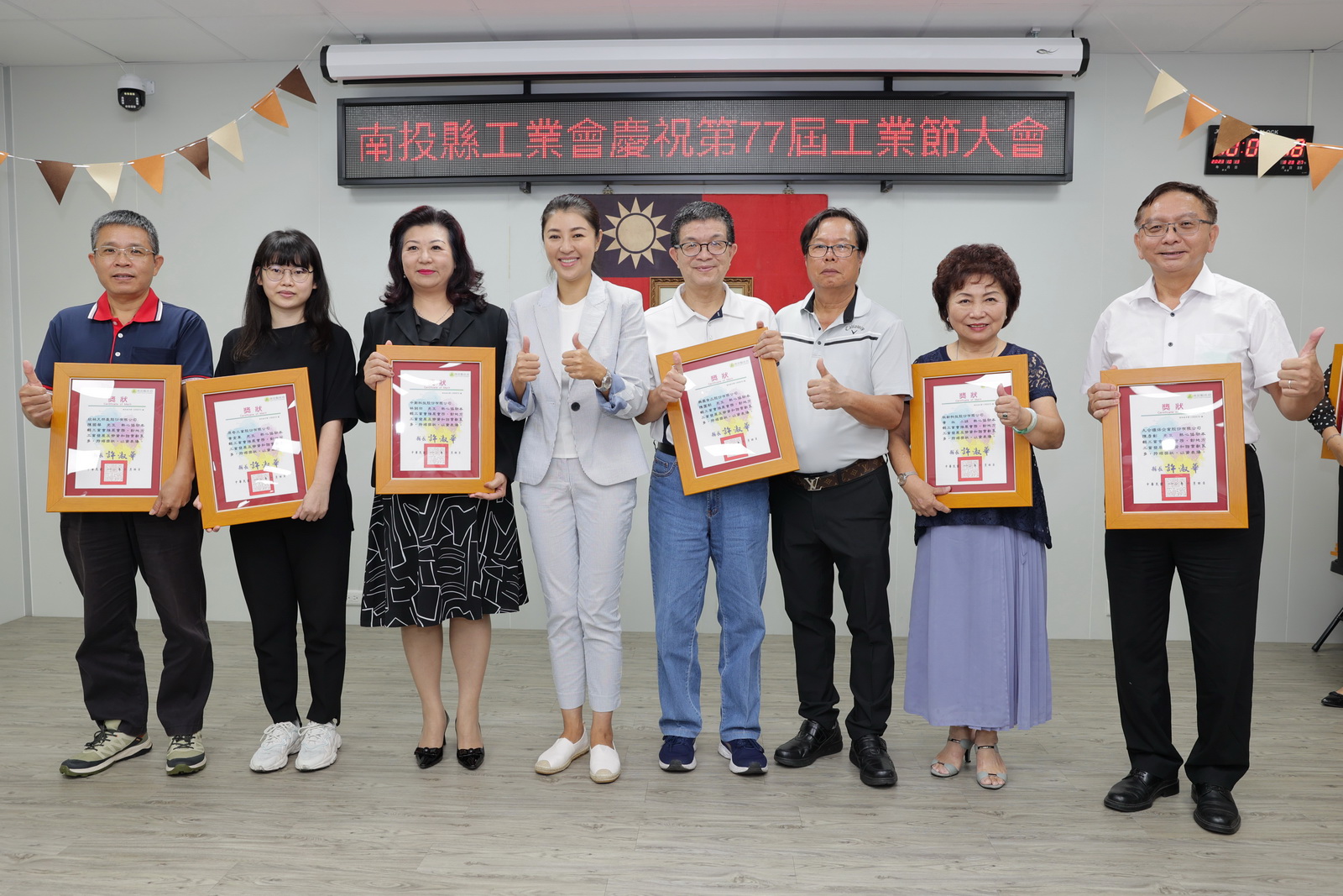 工業節將至,南投縣工業會13日在南投縣農會舉辦「第77屆工業節大會」,活動由工業會理事長黃志明主持,縣長許淑華出席,親自頒發獎狀表揚60家112年績優廠商,縣議員林儒暘、南投市長張嘉哲都出席,感謝企業對南投經濟發展的貢獻。   許縣長指出,南投縣工廠以中小企業為主,每家廠商都非常認真經營,尤其受到表揚的廠商,除了支持縣府舉辦燈會及其他大型活動,也積極幫助弱勢團體,對社會公益有所付出,期盼廠商與縣府共同維護勞工工作環境品質,縣府也會做企業的最佳後盾。   黃理事長表示,南投縣雖然是觀光大縣,但稅收上還是有賴中小企業,此次工業會表揚績優工廠,感謝廠商一年來的付出,希望中小企業能持續帶動南投縣就業,讓南投縣成為幸福的縣市。   張市長說,許多南投市民都在工業區上班,感謝工業區廠商在照顧員工、提升經濟上都為南投帶來許多貢獻,希望大家都能安居樂業,幸福的生活在南投。   林議員說,南崗工業區共有400多家廠商,提供在地民眾許多就業機會,讓南投縣民能留在家鄉工作,近年受到大環境影響,廠商經營不易,希望中央與地方協助,讓廠商能蓬勃發展,提供更多就業機會,讓南投子弟就近在地工作。