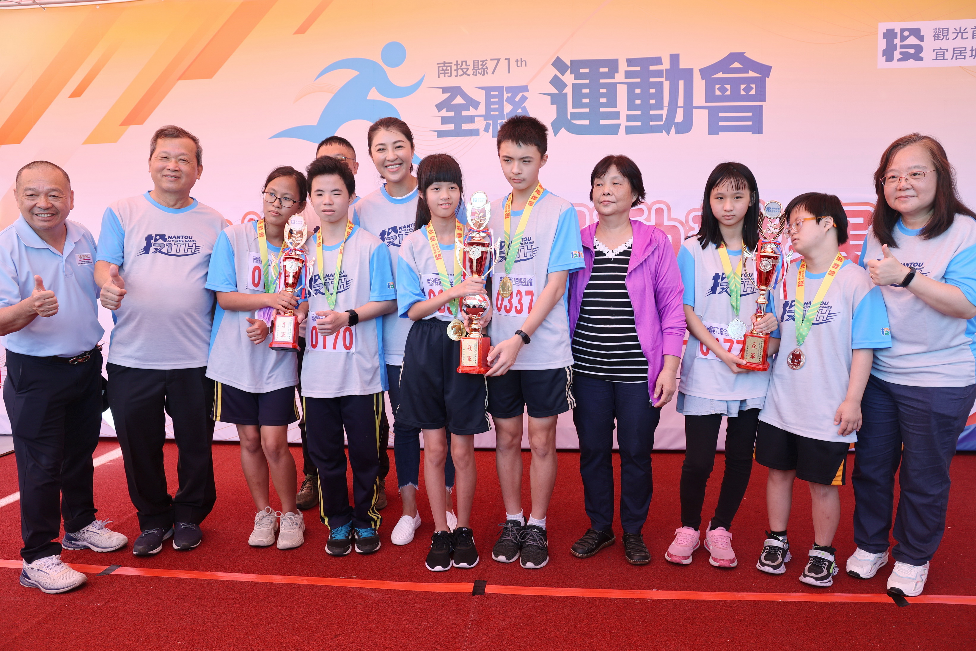 南投縣第71屆全縣適性體育競賽5日上午9時在縣立體育場盛大登場,共計60個單位,2,438人次選手及205名職員參與競賽。縣長許淑華出席主持開幕儀式,勉勵選手發揮運動家精神爭取佳績,並頒發競賽獎牌及獎盃表揚前三名優勝隊伍,隨後由副縣長王瑞德、教育處長王淑玲、南投縣體育會總幹事洪銘惠陪同至休息區,為選手們加油打氣,受到各隊選手熱烈歡迎,各隊選手個個精神抖擻,摩拳擦掌等待上場颷技,場面熱烈。