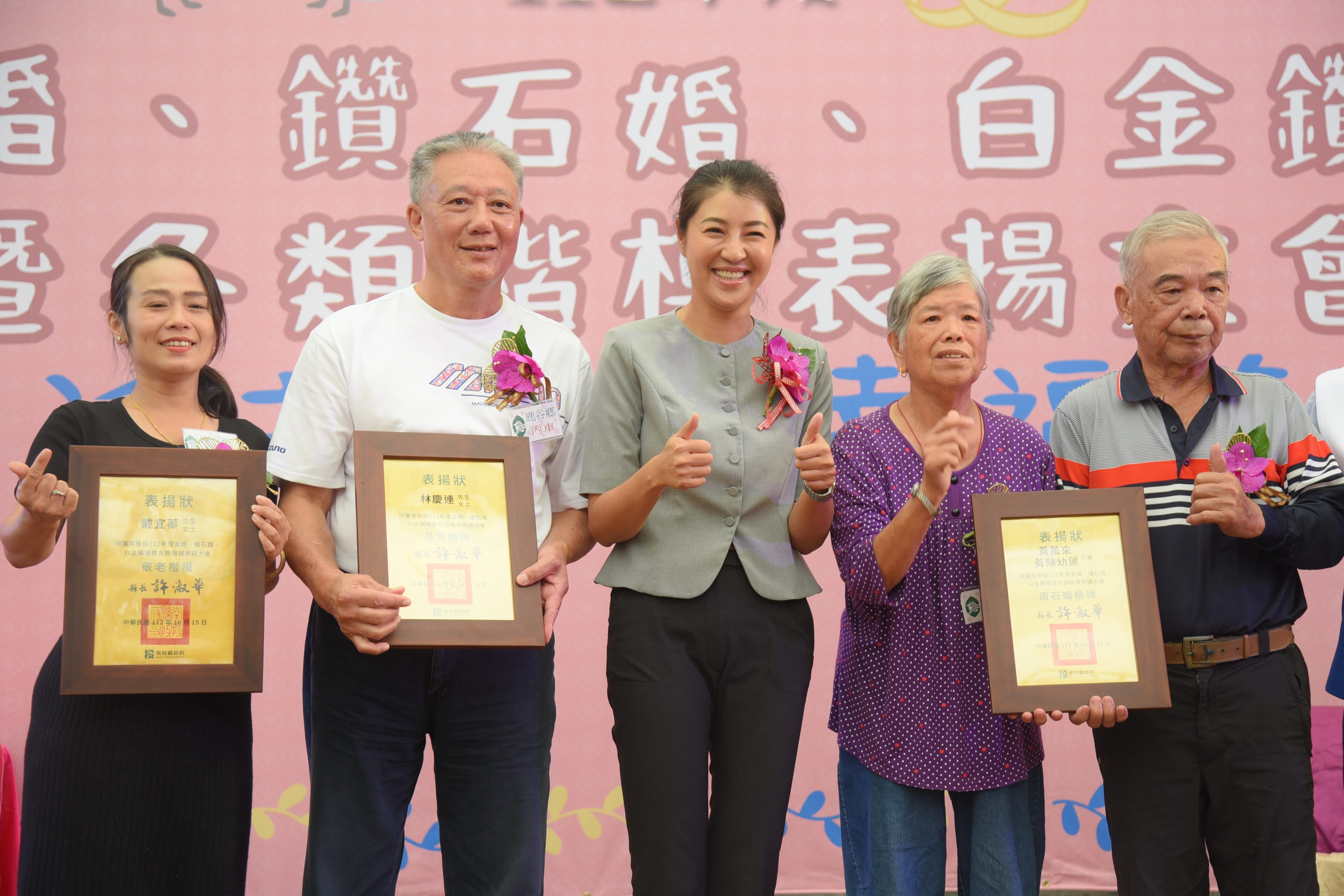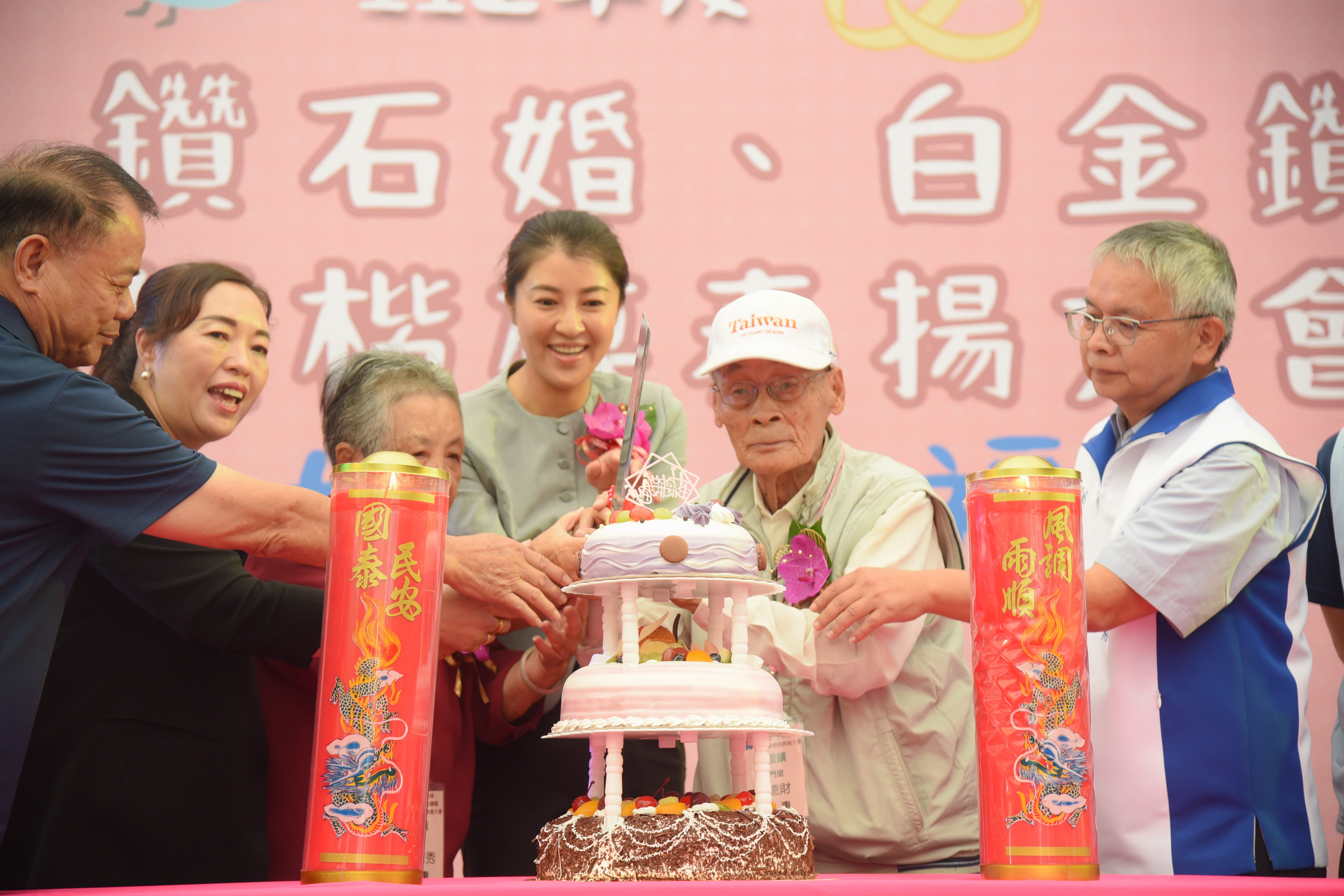 許淑華表示,現代年輕人愈來愈晚婚,離婚率也愈來愈高,夫妻相處走過半世紀以上,實在難能可貴,也是年輕人榜樣。隨後,許淑華協助白金鑽婚代表謝德財、謝簡翠秀夫婦一起點蠟燭、切蛋糕,並祝福所有長輩重陽節快樂。