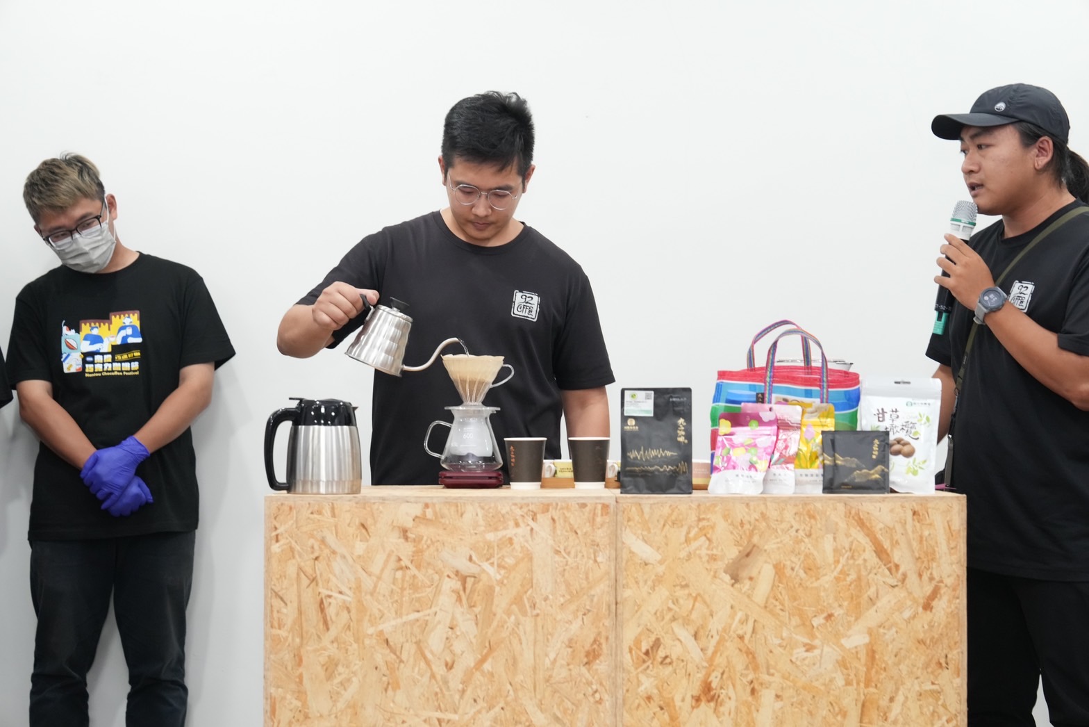 試營運活動中,南投兩大產地-國姓與魚池冠軍咖啡進行試飲會,邀請到九二咖啡國姓鄉農會代表介紹國姓咖啡豆之特色與進行手沖示範,並預告開幕當天千人將齊聚戶外在咖啡師指導下進行手沖體驗,並可品嘗到南投在地自產豆的風味;魚池鄉則邀請榮獲今年度全國咖啡烘焙賽冠軍山豬衝吧負責人-沈詠為,精選魚池鄉冠軍豆進行手沖風味品嘗。