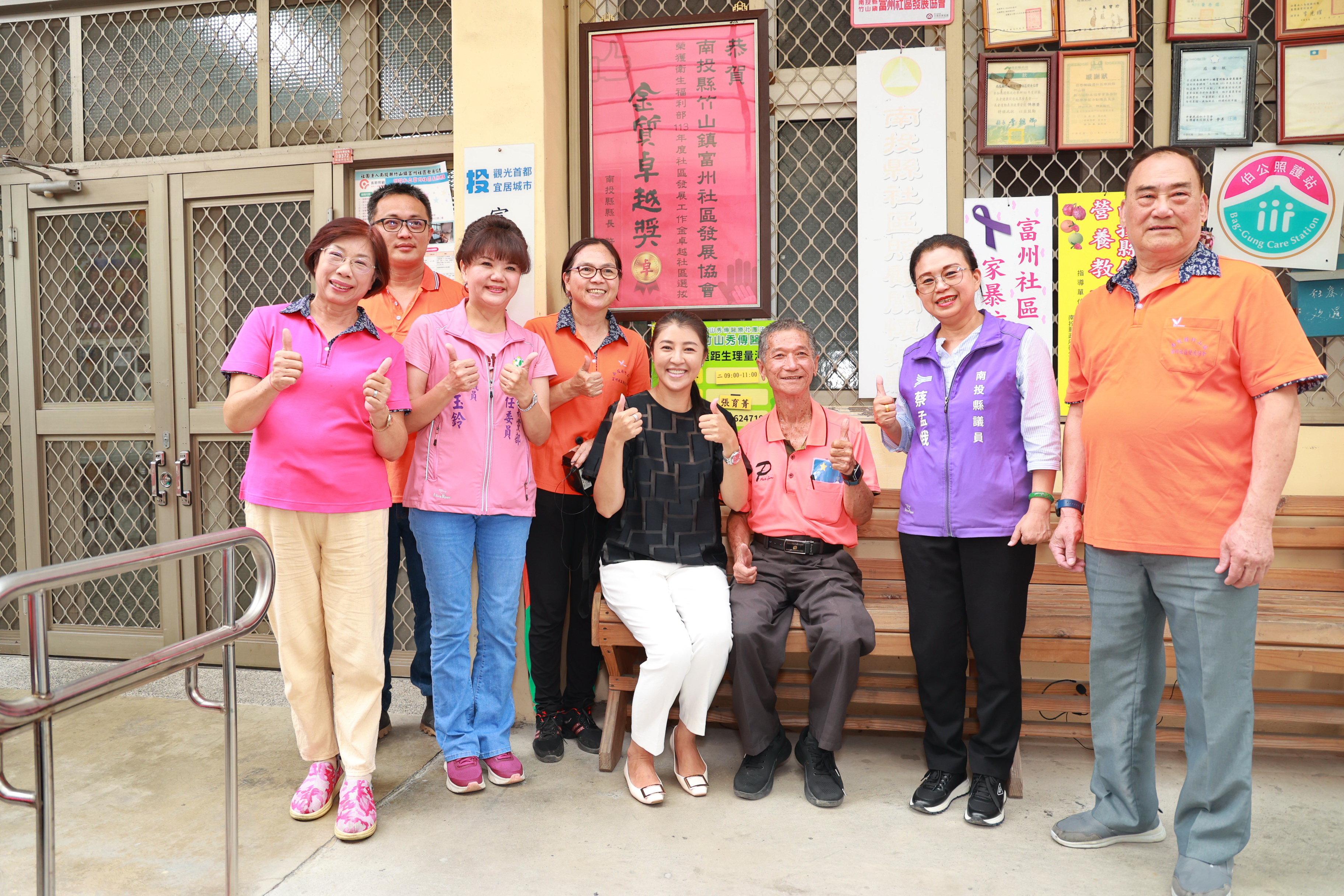衛生福利部113年度全國社區選拔,南投提報9個社區都獲大獎,首次大滿貫。其中,竹山富州社區獲金質卓越獎、延正社區獲銀質卓越獎,縣長許淑華19日下午前往贈匾,直說「富州社區全國第一名」,可喜可賀。