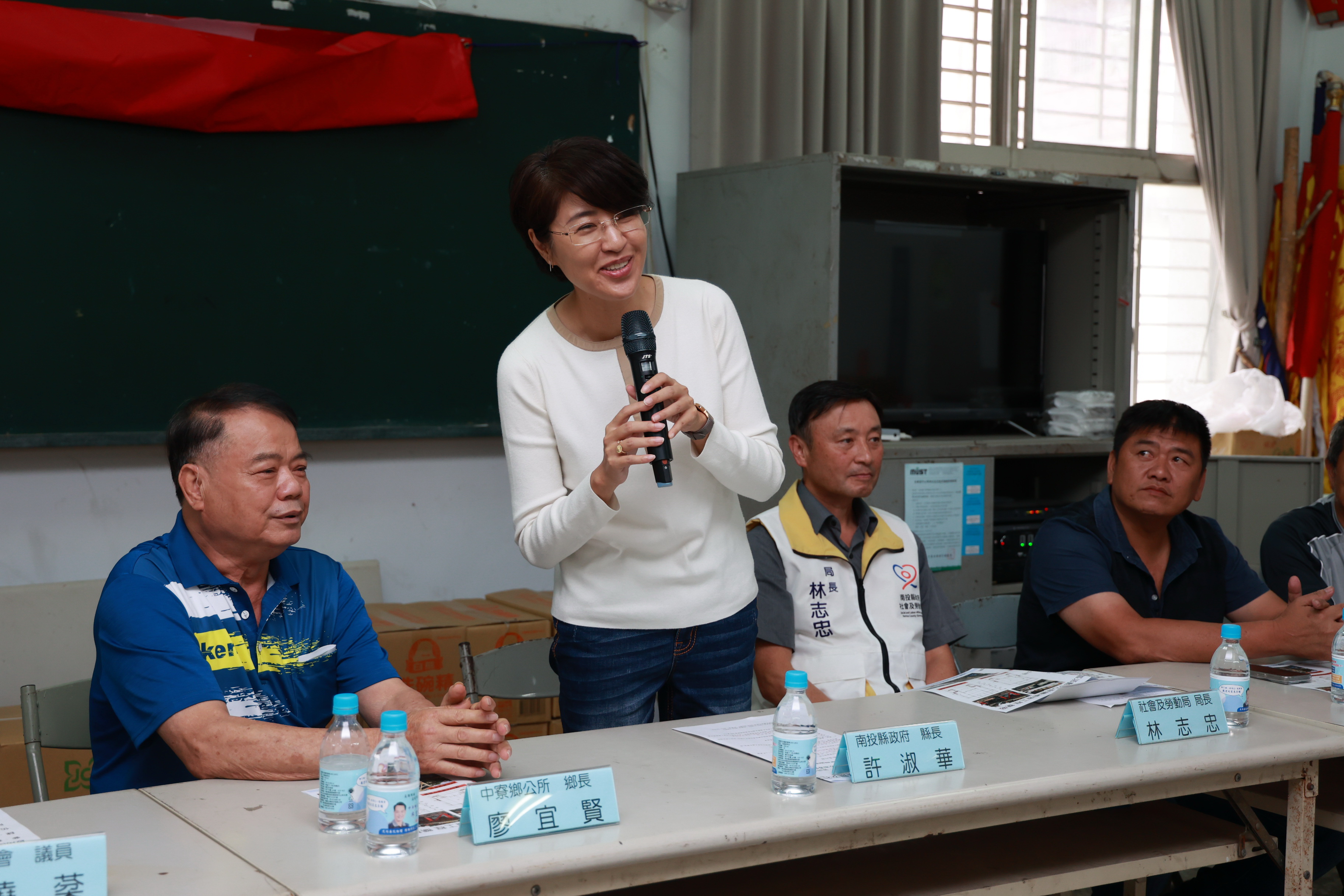 許縣長下午由社會及勞動局長林志忠等人陪同,前往中寮龍安社區活動中心,並針對龍安社區活動中心耐震問題聽取簡報,中寮鄉長廖宜賢、縣議員唐曉棻及關心地方的民眾,也到場了解。
