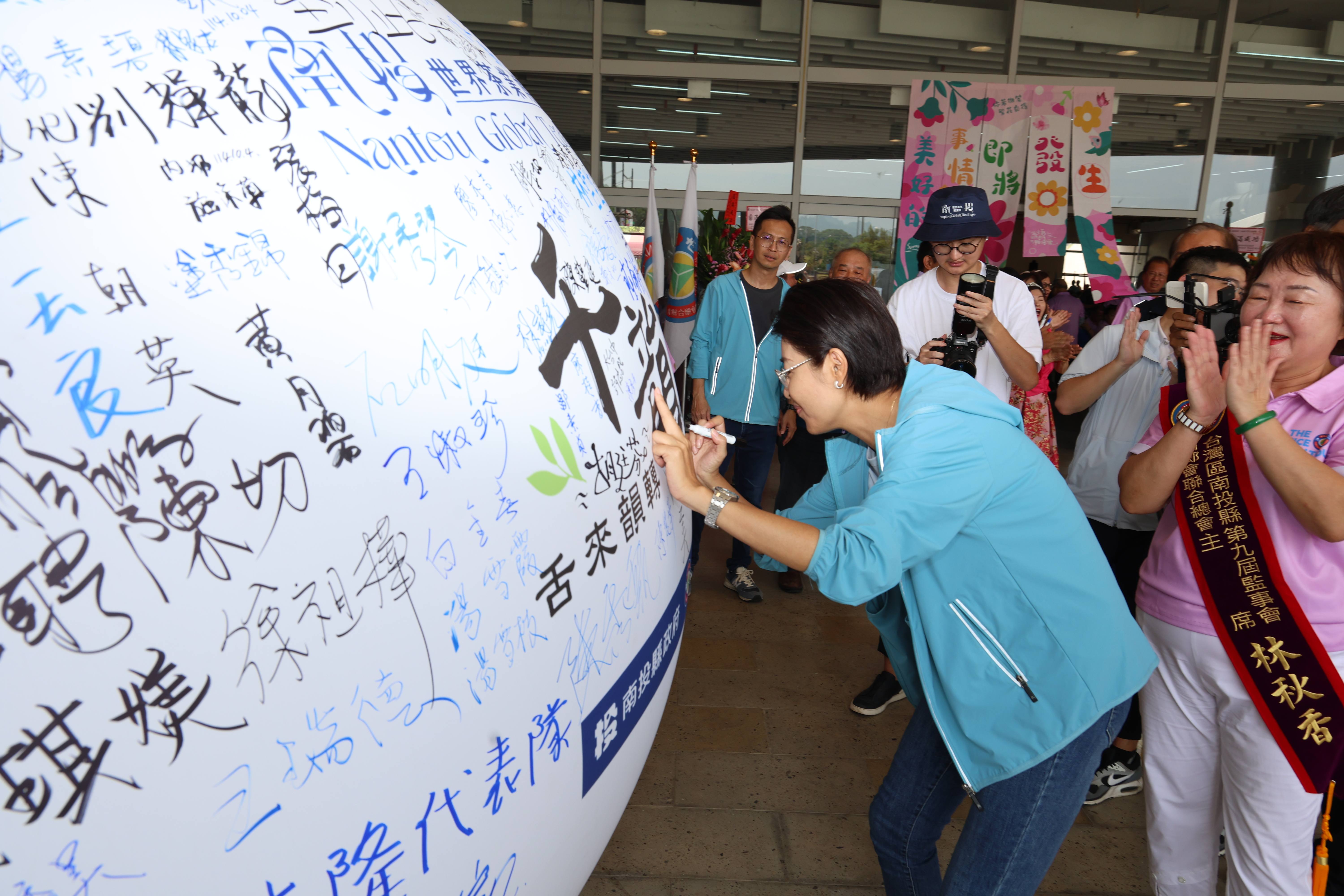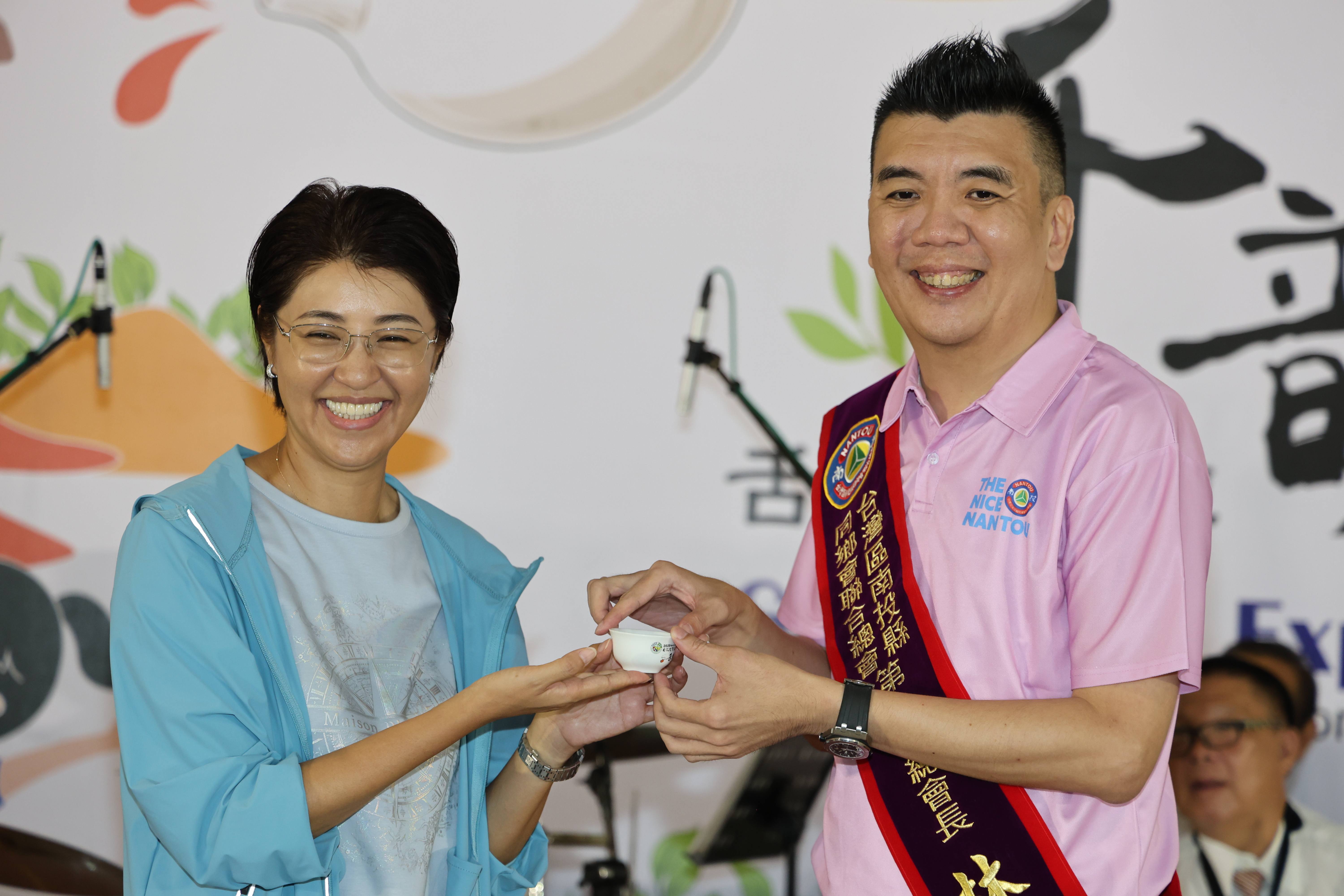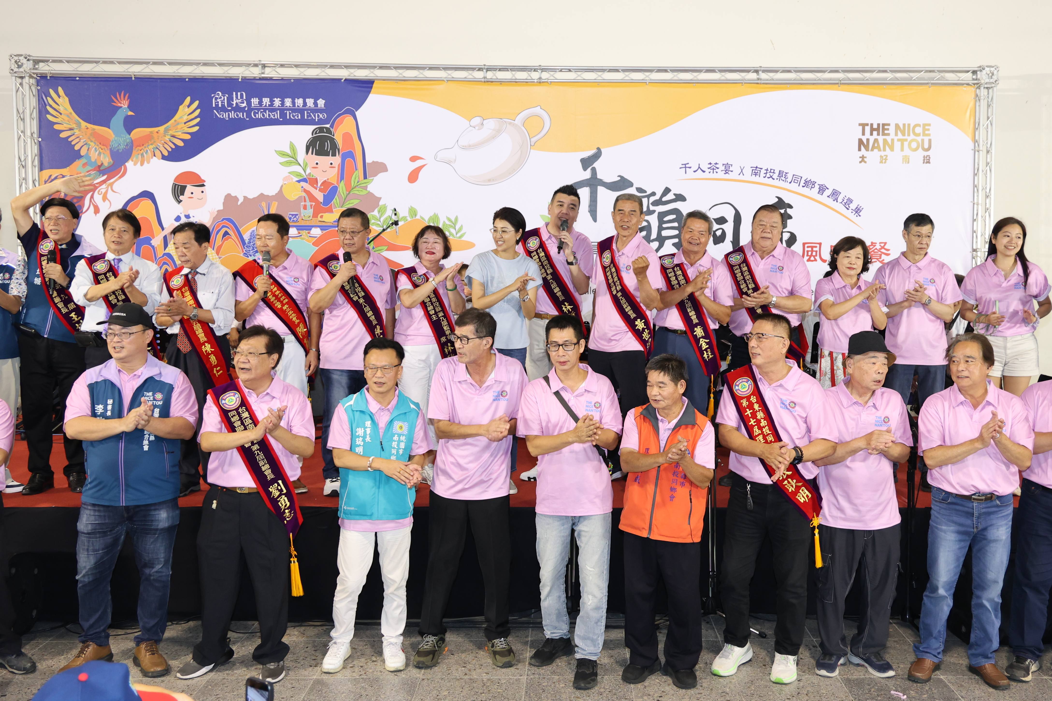 舌來韻轉、千韻同席「千人茶宴」除了1千位海內外16個分會的南投同鄉參加,也邀請全縣各鄉鎮市農會幹部一同出席,許縣長及副縣長王瑞德也率縣府各局處長踴躍參加,還有立委游顥及縣議員林儒暘等多位民代到場,共同為南投茶葉等相關農特產品擴大推廣行銷,許縣長特別致贈每位參加南投同鄉一盞「舌來韻轉」茶博杯,更不忘提醒大家,一定要逛遍茶博、採購豐收滿行囊,再結束這次返鄉行程,許縣長並和台灣區南投縣同鄉會聯合總會幹部及各縣市會理事長大合唱「回鄉的我」,為活動掀起高潮。