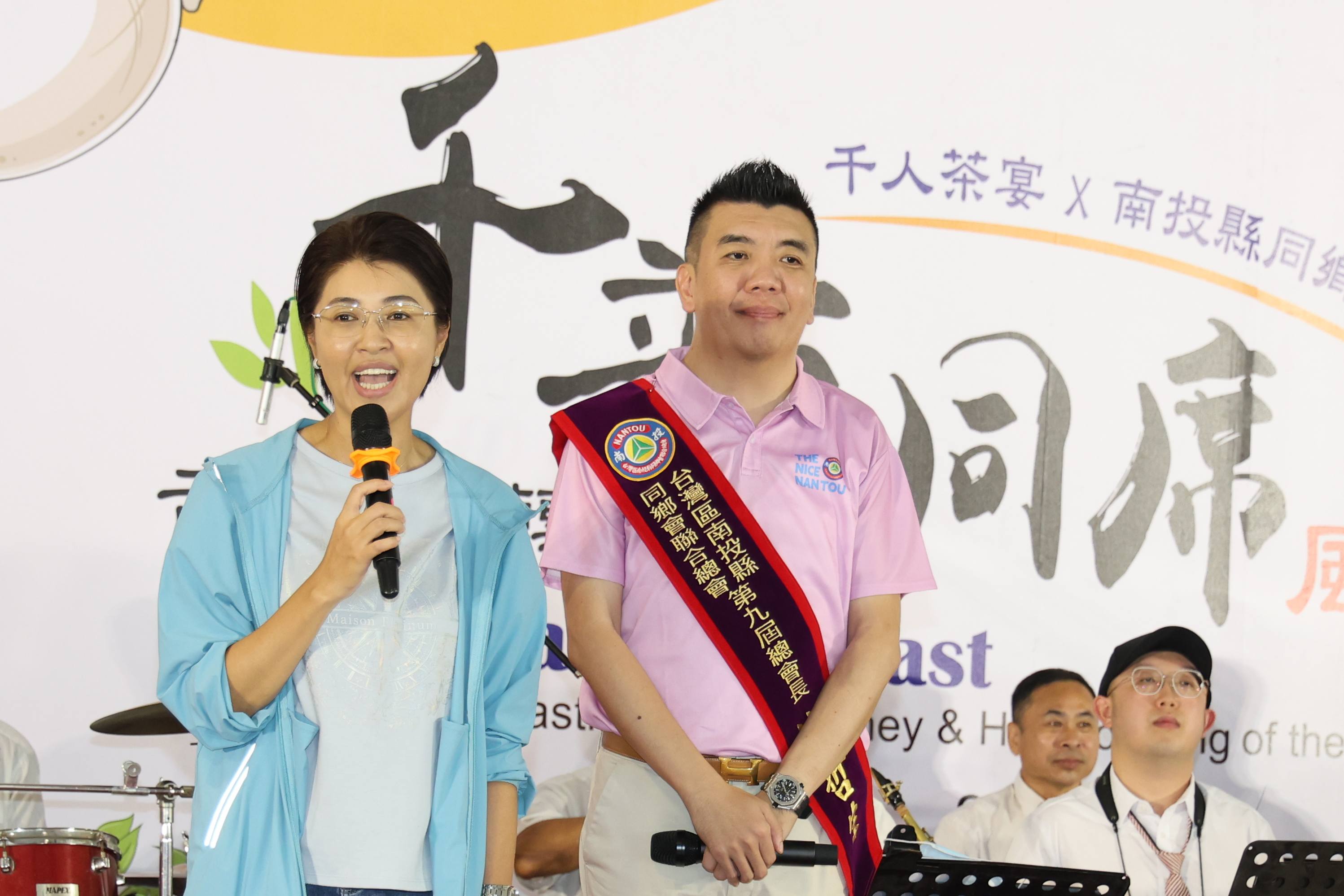 配合2025南投世界茶業博覽會盛大開幕,一場席開115桌的舌來韻轉、千韻同席「千人茶宴」,4日中午在南投縣農工商會展中心熱鬧登場,縣長許淑華偕執行這場盛會的台灣區南投縣同鄉會聯合總會長林哲生及眾多貴賓一齊開席,品嘗享用特色茶風味的南投菜。許縣長表示,結合南投同鄉會鳳還巢活動舉辦的千人茶宴,再次為南投世界茶業博覽會系列活動打先鋒,一方面推廣南投最知名的茶產業,更凝聚南投旅外鄉親情感帶動在地商機,已經形塑成為南投年度節慶大事,非常感謝各界共襄盛舉。