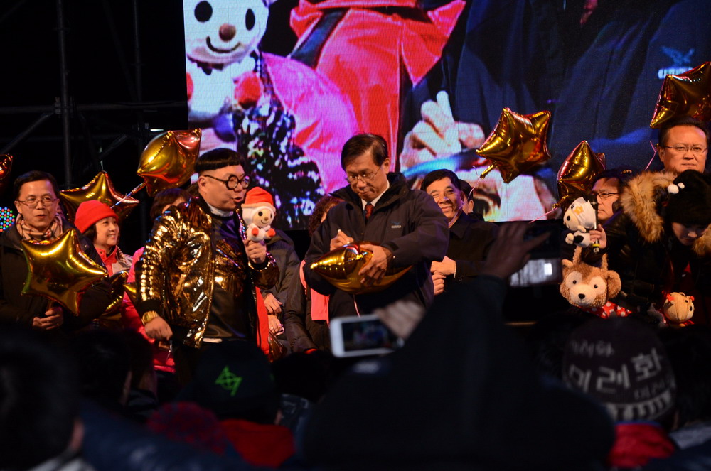 全台最高跨年晚會12月31日 晚間在清境統一超商前停車場登場,縣府團隊由縣長林明溱率領,陪同遊客一起跨年倒數,並為新人見證,增添跨年夜浪滿氣氛。停車場擠滿人潮,進入倒數時,現場民眾high翻了,跨年煙火在高山上施放,照亮清境夜空。 跨年晚會從7時開始,活動超過5個小時,9時30分林縣長率領副縣長陳正昇、縣府秘書長方信雄及一、二級主管、清境農場場長王昭舉等貴賓上台向遊客問好並發送紅包,氣氛high了起來。林縣長也在許願氣球上寫下願望,期許南投縣民幸福平安及縣內觀光會更好,並將許願氣球升上天際,預祝願望實現。 林縣長表示,歡迎大家來全國最高的跨年會場,距離星空最近,欣賞美麗的夜空景色,祝大家跨年愉快。林縣長也請民眾留在清境迎接2015年曙光,展開新的一年人生旅途。 活動中,主持人邀請現場民眾上台唱歌跳舞,台下觀眾也揮動著螢光棒相互輝映,現場氣氛頓時變得相當歡樂。跨年晚會活動內容精采豐富,有賽德克族舞蹈表演、電音派對、原民歌手林娜帶動唱等,還有KA樂團等知名樂團輪番演唱,精采熱鬧不間斷,清境夜晚彷彿不夜城,熱鬧氣氛持續延燒! 11點40分左右,主持人藉由招領遺失的名牌包,原來是為林先生安排求婚橋段,浪漫的求婚讓女主角胡小姐感動落淚,並答應求婚,45分時林縣長上台為這對新人見證,期許他們快生小孩。倒數6分鐘時,林縣長伉儷率領縣府團隊再度上台,與現場民眾舞動,準備和民眾一起倒數迎接新年,現場民眾逐漸向舞台靠攏,氣氛愈來愈high,許多民眾揮動手中的氣球及螢光棒倒數,當2015年正式來臨,現場施放煙火慶祝,所有參與民眾都沈醉在璀璨耀眼火花下,迎接嶄新的一年。