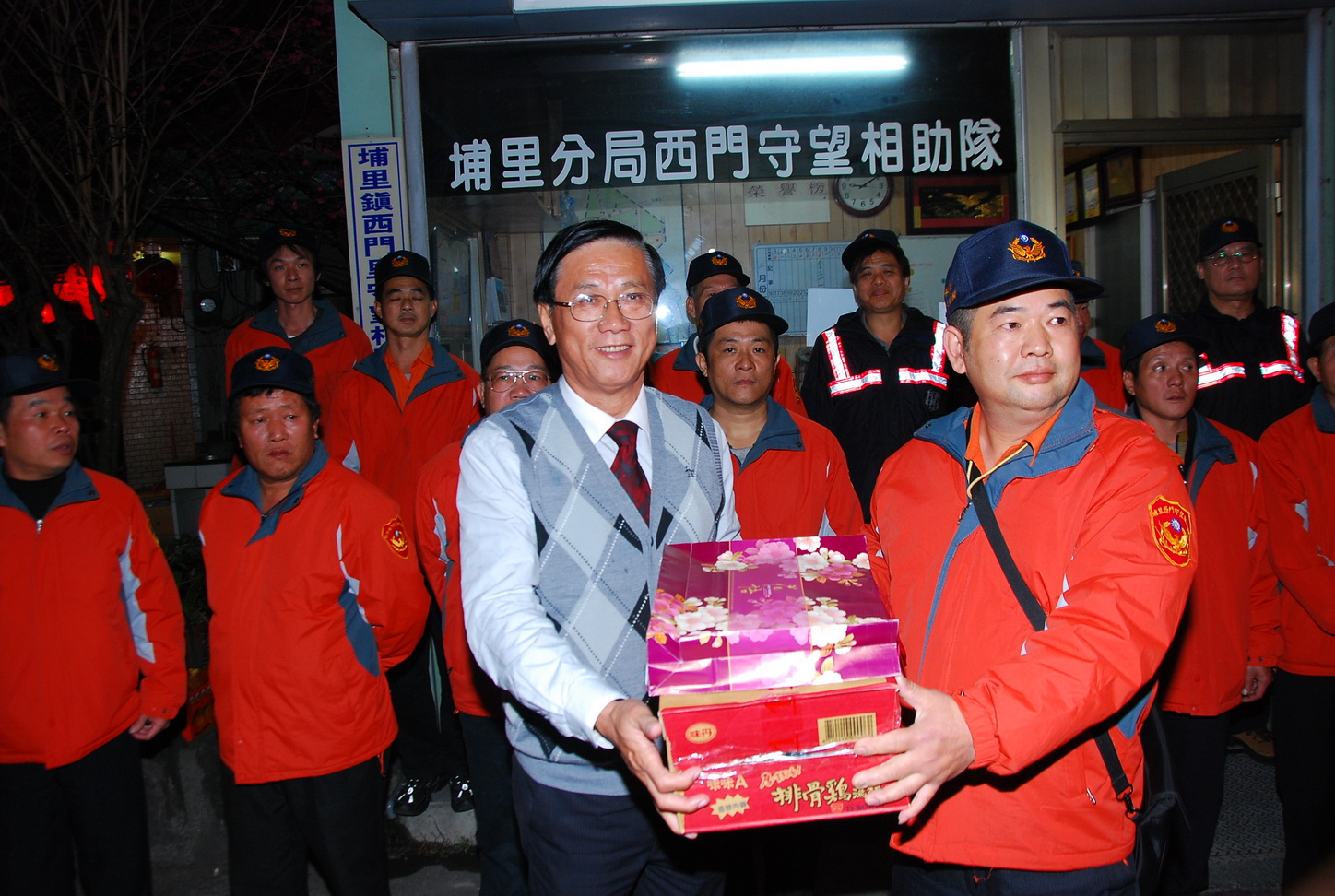 為了讓民眾安心過年,縣長林明溱16日深夜到埔里慰問執行春安工作的員警、義警、民防、義交、守望相助隊,感謝他們在天寒的夜中犧牲奉獻,南投是觀光大縣,春節期間交通疏導及治安治務勢必加重,他希望值勤工作要注意安全。 今年春安工作以治安平穩、交通順暢及熱心服務等三項重點為主軸,為了解工作執行情形,並慰問工作人員,縣長林明溱由警察局長呂春長陪同,分別前往南村守望相助隊、愛蘭派出所、西門守望相助隊、埔里分局、慈恩守望相助隊及鯉潭所等六處春安據點,縣議會副議長潘一全、議員王彩霞、許阿甘、吳國昌等地方人士也隨同參加。 林明溱表示,為確保縣民能過個好年,春安期間,勤務將比平時更加忙碌,感謝全體警察同仁及義警、義交、民防、守望相助隊、警察志工們的犧牲奉獻,縣民也會感謝這樣的付出。夜間天氣寒冷,林明溱提醒相關工作人員不要忘了多添加衣物,避免著涼。 林明溱除了代表縣府致贈慰問品給春安工作人員外,並另外發給小紅包,提前祝賀新年,讓相關員警及守望相助隊感到窩心。 縣府和縣議會關心春安工作,16日晚間分成多組人員到各地慰問,縣長林明溱和副議長潘一全負責埔里、議長何勝豐以竹山、鹿谷地區為主,南投市及名間鄉由副縣長陳正昇帶隊,縣府秘書長方信雄到集集、水里及魚池慰問,民政處長吳燕玲則到草屯等地進行春安慰問工作。
