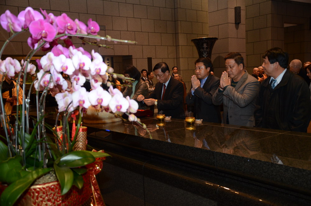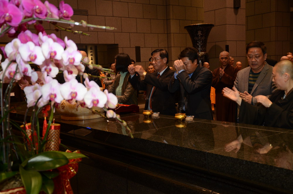 副總統吳敦義伉儷19日農曆大年初一回到南投故鄉,下午前往南投市、名間鄉、國姓鄉及埔里鎮各宮廟祈福參拜,並發送總統府福袋予民眾,南投縣長林明溱陪同恭賀鄉親羊年洋洋得意;從南投市營北里福龍宮開始,吳副總統一行連趕7個宮廟,所到地方都吸引許多鄉親到場排隊領取福袋,頓時年節氣氛充滿全場。 福龍宮、碧山巖、受天宮、三清宮、護國宮、玉佛寺、中台禪寺,吳副總統所到之處,都受到各宮廟人員及信眾熱烈歡迎,吳副總統除了上香祈福,也和各宮廟執事人員握手寒暄,發放總統府福袋給民眾,由廟方主委或住持轉發,並祝賀大家新年好。另立法委員許淑華、南投市長宋懷琳、埔里鎮長周義雄、縣議員邱美玲及前國姓鄉長林福峯等也到場跟鄉親拜年。 吳副總統到碧山巖時,特別於廟前勘查貓羅溪整治情形,並允諾將協調第三河川儘速整治該溪流。宋市長表示,七、八月防汛期將屆,為讓市民平安渡過,吳副總統將請相關單位與第三河川局協調整治貓羅溪事宜。 另中台禪寺致贈花束予吳副總統,同時中台禪寺信眾也列隊歡迎他。林縣長表示,大年初一吳副總統回到南投走春拜年,到縣內各宮廟祈求風調雨順、國泰民安。吳副總統身為南投子弟,相當關心本縣鄉親,每年都會回鄉看看鄉親,並期望民眾能平安、賺大錢!