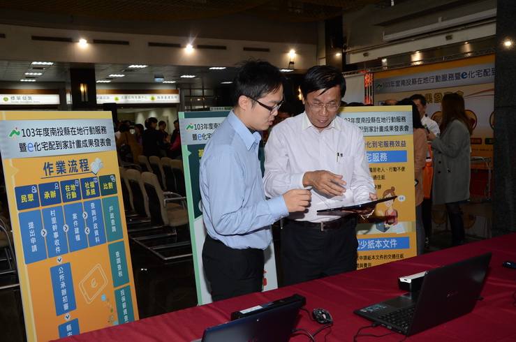 縣府3日上午在縣府大樓中庭盛大舉行南投縣在地行動服務暨e化宅配到家計畫成果發表會,由縣長林明溱主持,林縣長對於中央補助該項計畫390萬元,整合縣府急難救助、低收入戶生活補助、身心障礙生活補助…等10項社福業務,提供行動化到宅服務,嘉惠弱勢族群特別表達感謝之意,林縣長表示,本縣3鄉鎮市辦理成效良好,今天率先發表成果,未來希望爭取更多經費擴大全縣辦理,讓更多獨居老人和經濟弱勢家庭能夠受惠,減少申辦社福業務奔波往返之不便。 林縣長表示,社會進步,科技發達,手機和行動網路已經和民眾生活息息相關,運用科技之便,透過e化宅配到家服務平台,運用行動載具,讓弱勢族群不用出門也能申辦各項社福業務,實現多用網路,少用馬路的概念,深具意義。該計畫1年來已在南投市、中寮鄉及國姓鄉等鄉鎮試辦成果相當豐碩,即起將繼續推廣到埔里鎮及草屯鎮,未來希望能繼續擴大到13鄉鎮市,推動社福業務全面資訊行動化,嘉惠更多弱勢族群。 林縣長也表示,為提昇縣府行政效率,就任後藉由時下盛行的社群軟體(LINE)成立主管群組,即時聯繫溝通,各單位主管對於各項施政事項與民意,能達到立即回應,妥善處置之功,對於行政效能提高有極大幫助,落實為民服務目標。本縣遠距照護已實施多年,但尚有不足之處,未來希望能研發網路問診服務機制,提供行動不便的弱勢族群專業醫療照護,以達照顧弱勢族群及減少社福資源支出目標,一舉數得。 計畫處表示,為落實照顧弱勢與強化社會救助機制,近年來積極爭中央經費補助,先後獲得國家發展委員會及衛福部補助經費共390萬元,陸續於南投市、中寮鄉、國姓鄉、草屯鎮及埔里鎮等5鄉鎮市推動計畫,成效良好,該計畫整合縣府「社會福利資訊系統」與中央「弱勢e關懷系統」兩大社福系統,由村里幹事攜帶手提電腦、平板等載具,親自到獨居老人、行動不便的民眾家中辦理,民眾不用一一到鄉鎮市公所或縣府即可辦理所需服務項目,達到快速、便民之目標。此外,為提供鄉親更方便的公共環境案件申報方式,如道路坑洞、野狗捕捉、路燈維修……等,縣府更建置結合行動服務、Google map的「南投縣即時通報系統」,讓民眾能簡單地透過手機、平板或網站,輕鬆點選案件類別完成案件申報。 當天縣議員羅美玲、廖梓佑、黃文君、陳昭煜及各社福團體都到場參與,衛福部、國家發展委員會及中華電信也都派員出席。活動由北投國小太鼓隊及中華電信薩克斯風樂隊演出拉開序幕,隨後林縣長和與會貴賓一起聽取成果簡報,並到示範區實際體驗,由專人詳細講解說明,民眾也爭相體驗,場面相當熱烈。