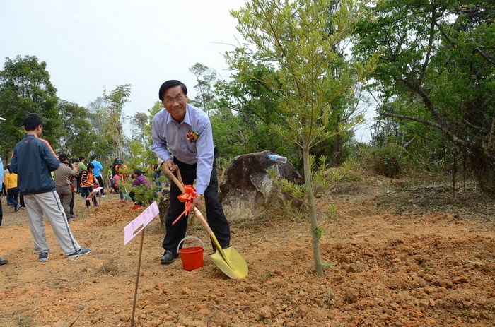 3月是種樹的季節,縣府與林務局南投林區管理處3月7日上午在魚池金龍山,舉辦104年植樹及健行活動,吸引超過700位民眾參與,很多都是全家一起來,小朋友在家長指導下親手種下樹苗,顯得相當開心;縣長林明溱和所有與會貴賓一起豎起大拇指說「讚」,鼓勵民眾多多種樹愛地球。