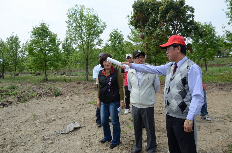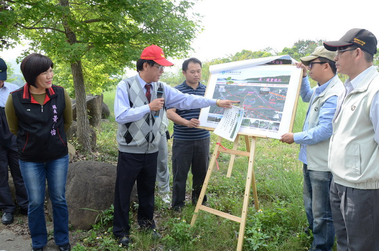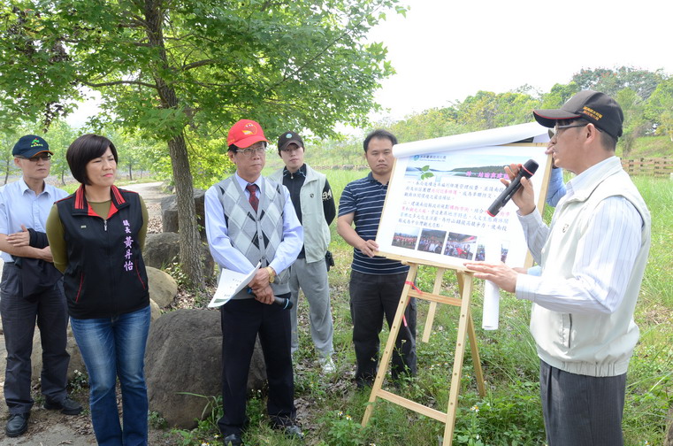 圖片-林縣長會勘東埔蚋溪滯洪池生態園區  盼活化吸引人潮