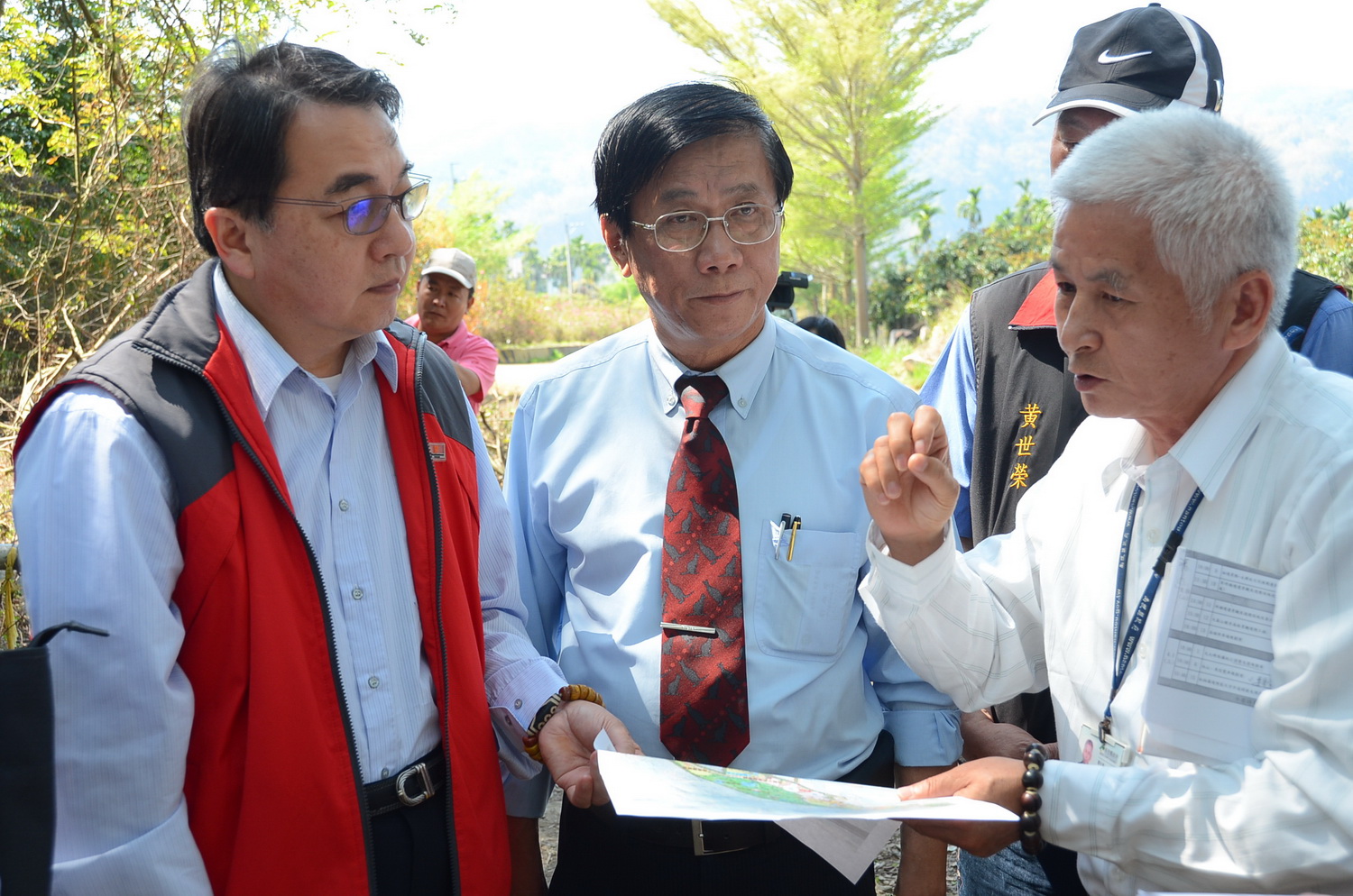 縣長林明溱1日陪同交通部觀光局局長謝謂君前往草屯九九峰侏儸紀恐龍公園及受天宮天空步道計畫預定地進行初步會勘。謝局長稱讚縣府所提計畫相當有創意也很吸引人,他表示樂觀其成,也建議縣府直接提報今年該局的跨域亮點競爭型計畫來爭取經費補助。