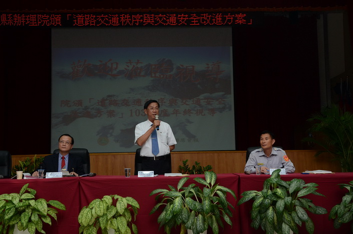 行政院「道路交通秩序與交通安全改進方案」103年度年終視導綜合座談8日下午在縣府警察局6樓禮堂舉行,由縣長林明溱率本縣道安會報業務單位與談,交通部道安會組長徐台生及視導小組對於縣府積極推廣交通安全教育,以創新作為提昇道安宣導及交通安全成效,表達高度肯定。