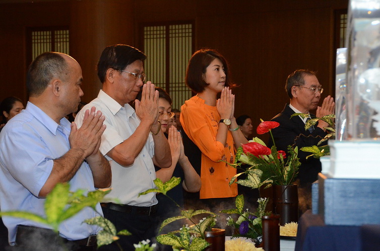 浴佛大典在法師引領下,大眾唱頌讚佛偈,並獻上燈燭、香湯、香花,林縣長和參加信民眾以手沾香湯,躬身禮敬佛足,典禮莊嚴肅穆。而因為尼泊爾大地震,活動現場也特別設置祈福樹,讓參加民眾可以寫下祈福卡,一起為尼泊爾災民、為世界祈福。