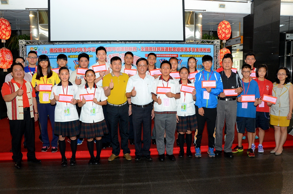 南投縣體育界今年度可說大豐收,縣內子弟兵在全國中等學校運動會、全國原住民族運動會、全國女子壘球甲組聯賽總共囊獲49金37銀24銅,成績亮眼。為鼓勵傑出選手,縣府今年特別將體育獎助學金從7萬元提高為10萬元,並於5月19日舉辦表揚茶會,由縣長林明溱頒獎表揚獲獎選手及教練,見證本縣體育光榮一頁。 林縣長表示,本縣選手出類拔萃,僅今年度就創下許多佳績,為本縣帶來無上光榮。為鼓勵他們繼續努力為縣爭光,縣府特別調高體育獎助學金。由於奪牌選手相當多,獎助學金高達1,480萬3,900元,縣府在財政困難下,仍不忘推動體育發展,積極籌措經費發放,期盼培育出偉大的選手,為本縣爭取最高榮耀。 此次表揚茶會表揚對象包括3項大型競賽選手與教練,縣議會副議長潘一全、議員賴燕雪、許阿甘等人都到場見證。會中首先由主辦單位簡報近年來本縣代表隊奪牌成績,並指出全原運首次榮獲全國獎牌數積分全國第1、全中運全國獎牌數全國第6、全國女子壘球甲組聯賽10年總合獎牌數全國第1等3大榮耀,不僅奪牌數都寫下歷年新高,也勝過多數資源豐足的縣市,為本縣體育史寫上燦爛亮眼的一頁。 林縣長對本縣選手拿下如此成績非常開心,尤其今年度全原運首次由南投承辦,不僅將總錦標第一殊榮留在南投,奪牌數高達28金21銀10銅,在船艇競速、角力、空手道、拔河、柔道、跆拳道及傳統摔角等本縣重點發展項目均有所斬獲,更是過去幾屆的數倍,成長甚多,令人驚嘆。 全中運也不遑多讓,本縣選手北上新北市競技,勇獲20金16銀13銅,其中以空手道11金7銀7銅為最大宗,其次角力、跆拳道、柔道、田徑、射箭也各有佳績,相較103年全中運12金10銀9銅,可說成長驚人。而向來是女壘國手搖籃的本縣,今年在甲組聯賽也奪得高中組銅牌、國中組金牌佳績,持續培育優秀女壘選手。 對於縣府將體育獎助學金提高,體育界及家長均肯定。今年甫獲得總統教育獎,同時也是空手道奪牌選手的谷筱霜表示這對他未來出國競賽有相當的助益。此次獲金牌教練殊榮的黃泰吉便指出,選手出國競賽除了亞運、奧運外,包括亞青運等都沒有補助,因此縣府提高獎學金可說對選手們幫助甚大,減少籌措旅費的困擾。 值得一提的是過去曾為本縣爭光的國手,包括曾獲廣州亞運及仁川亞運銀牌的划船選手汪明輝、4屆女壘國手「巨砲」江慧娟等人也都在此次金牌教練頒獎行列,將他們豐富經驗繼續傳承。現場除由林縣長頒獎表揚全中運及甲級聯賽選手外,教育處長彭雅玲、原民局長張子孝也陸續頒發全原運及金牌教練獎項,並合影留念。