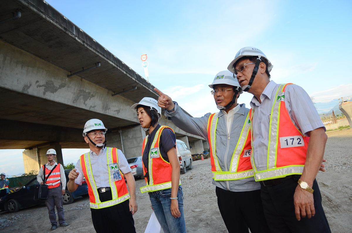 一行人首先來到國道6號舊正交流道施工現場,林縣長表示,目前只有在西向設置單一出口匝道,效益有限,將會在省道烏溪橋北岸下游增設東向出口及西向入口匝道,方便草屯、霧峰地區居民利用國道6號銜接國道3號,完工後可強化南投及台中生活圈的交通運輸功能。工程經費約6億元,目前施工進度超前,預計105年7月底完工。