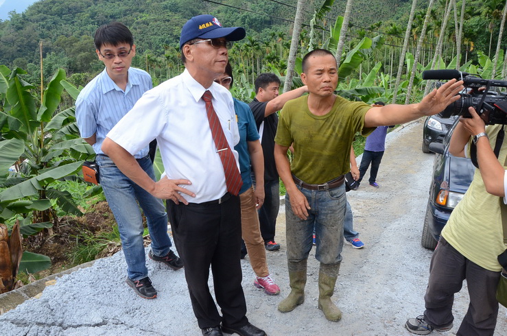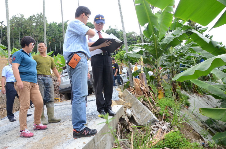 陳議員表示,該產業道路於5月底發生路面下陷,擋土牆毀損情形,經向縣府反映後,林縣長立即指示農業處及工務處深入了解,積極規劃改善,讓農民有安全運輸的道路,這份用心值得肯定。
