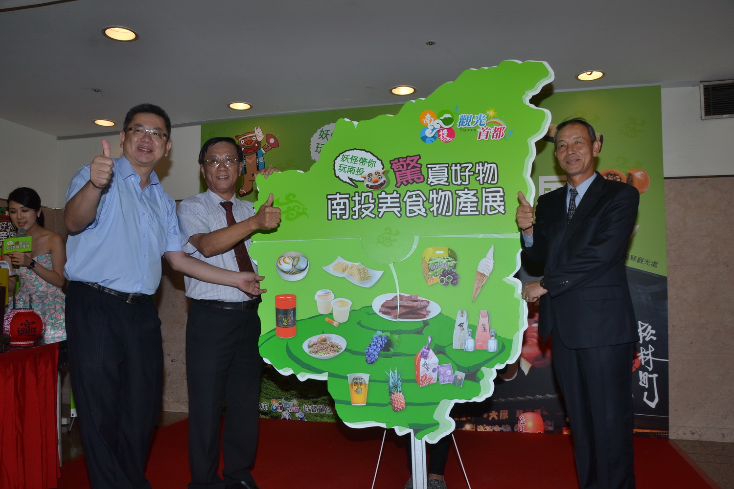 特展30日開幕活動由妖怪村「枯麻」、「八豆」表演拉開序幕。太平洋SOGO百貨營運總部副總經理播本昇、妖怪村長林志穎皆出席,與林縣長一同行銷美食物產,完成南投美食拼圖,並宣布美食物產展正式啟動!林縣長也到各攤位為南投縣參展單位打氣,並親自介紹琳瑯滿目的美食,民眾仔細聆聽並熱烈選購,林縣長也和播本昇副總一起發送竹山紫南宮紀念幣給前100位早鳥民眾,場面熱鬧。