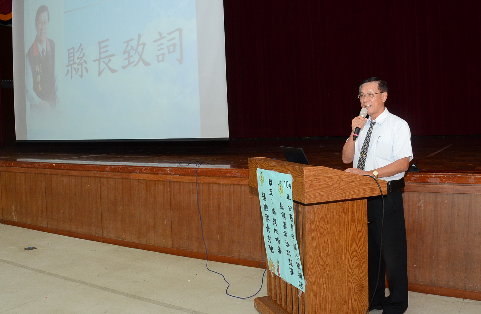 縣府13日於地下大禮堂舉辦104年公務員申領小額補貼款項專案法紀講習宣導,邀請到南投地檢署檢察長楊秀蘭主講,縣府暨所屬各機關學校公務員約300人參加,縣長林明溱也到場提醒公務同仁要謹守法律規定,據實核銷,勿因一時貪念而觸法。