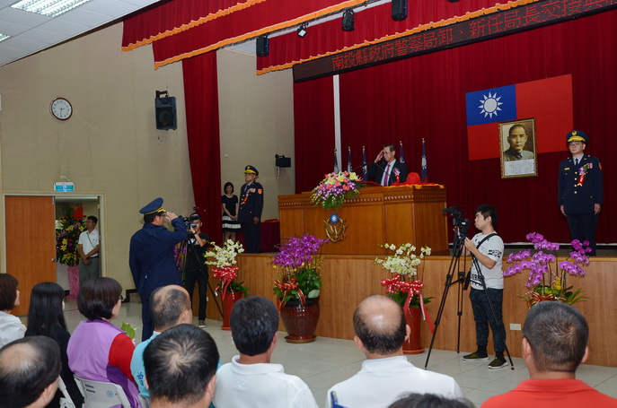 縣府警察局15日在該局6樓大禮堂舉辦局長交接典禮,由縣長林明溱主持,警政署警政委員謝文傑監交,見證新任局長魏慶賢與原任局長呂春長交接印信,魏局長並宣誓就職,滿場人員道賀,場面相當熱鬧。 林縣長表示,呂局長將榮升內政部警政署刑事警察局副局長,感謝呂局長在任內對本縣的貢獻,不論在治安及交通維護等,表現都相當傑出,並能有效偵破刑事案件、遏止犯罪,績效輝煌。另警察同仁在呂局長帶領下,該局獲得第7屆「政府服務品質獎」,成為其他單位學習典範。 魏局長原為內政部警政署保安警察第一總隊副總隊長,曾任臺中市政府警察局第四分局長、霧峰分局長及臺北市政府警察局文山第一分局長等要職,警政資歷豐富。林縣長指出,魏局長在總統與副總統大選及其他大型活動中,都能完成維安勤務,期未來能全力維護本縣治安,創造安定祥和環境。 謝警政委員將呂局長視為學習的偶像,他表示,呂局長具豐富刑事專長,打擊犯罪成果豐碩,表現優異傑出;而魏局長辦事反應迅速,有效處理各項事務,未來在魏局長領導下,南投治安、交通及同仁服勤安全等,都能相當順利。 會中,在各界見證下,呂局長及魏局長交接印信,魏局長並宣誓就職,過程簡單隆重。林縣長表示本縣為觀光首都,交通、旅遊及治安都相當重要,期許魏局長就任後,做好交通與治安,確保旅遊品質,同時也能有效遏止宵小,提升民眾生活品質。 交接典禮中,觀禮來賓可謂冠蓋雲集,包括縣議會議長何勝豐、秘書長陳國忠、多位議員、南投地方法院院長凃裕斗、檢察長楊秀蘭及各界代表等均到場祝賀。隨後,林縣長、何議長、各界代表及警察同仁歡送呂局長,于秀英議員更給呂局長一個美國式擁抱,場面溫馨。
