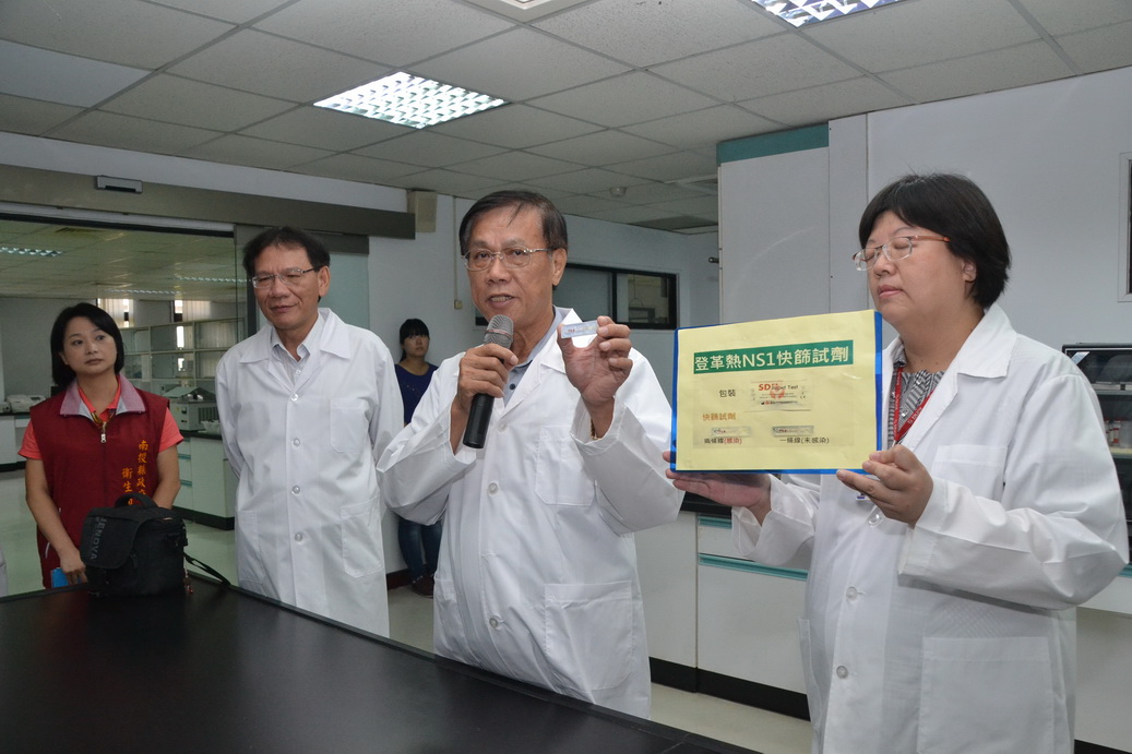 衛生局長黃昭郎表示,長久以來,使用登革熱快篩試劑,在台灣並不普及,且費用高昂,診斷均仰賴疾病管制署的檢驗,雖中央實驗室診斷準確,但時效性遠不及快篩試劑迅速。針對此波疫情疾病管制署雖緊急撥付公費登革熱快篩試劑至台南高雄等地,惟本縣並非其補助縣市,但林縣長為強化登革熱疫情防治,毅然指示該局緊急採購快篩試劑,並率先成立登革熱快篩檢驗站,協助醫療院所篩檢通報病例;當轄區醫療院所通報疑似登革熱病例時,除依傳染病通報流程辦理外,可另將個案檢體送至該局登革熱快篩檢驗站,現階段快篩對象為症狀出現前居住或曾至台南、高雄、屏東等登革熱流行地區,且出現登革熱疑似症狀者。