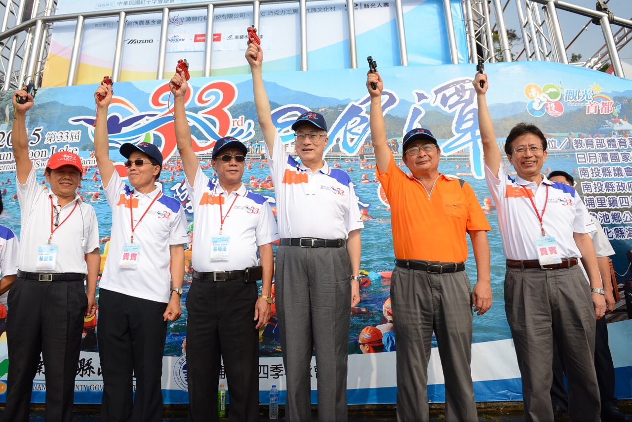 眾人引頸期待,視為人生重要挑戰的日月潭萬人泳渡主活動20日清晨揭開序幕,33國2萬391名泳士,熱情挑戰3,000公尺長泳,南投縣長林明溱陪同副總統吳敦義,在清晨7時30分於日月潭水社碼頭舉行1萬隻總統魚魚苗放流活動,象徵水庫生態源源不絕,隨後,到泳渡起跑點為泳士加油並鳴槍啟動,場面熱鬧壯觀。 林縣長表示,泳渡活動正式邁入第33屆,相當不容易,經過這麼多年努力,今年總計有33國1,985位外籍選手參加,還有173位身障選手,大家勇於挑戰精神令人佩服。這個活動因為憑藉安全、品質和創意,以及國內外愛好游泳運動人士支持,此次除創下外籍泳客最多紀錄外,更爭取亞洲第3個國際公開水域認可賽事,進一步將萬人泳渡推向國際舞台。 本次活動為確保泳渡安全進行,特協請新北市消防局義消救護大隊、嘉義水上救生協會、中華民國潛水救難協會、彰化縣海浪救生協會、台中童綜合醫院及彰化基督教醫院等單位參與,林縣長也特別向這些救護人員致謝,因為他們的付出,讓活動能安全圓滿。 創辦泳渡活動的吳副總統表示,日月潭泳渡活動 33年來在縣府歷屆縣長及團隊努力下,人數成長到2萬多人,成為國際泳界盛事,縣府用心值得肯定,希望在場泳士們都能安全完成泳渡挑戰,泳出健康、泳出成功。 當天除吳副總統外,還有教育部體育署副署長王水文、日月潭國家風景管理處處長張振乾、內政部空中勤務總隊大隊長林耕煜、日本南伊豆町長梅本和熙及杭州市體育局游泳協會會長趙榮福等貴賓參加。吳副署長呼籲大家多多運動,共同打造台灣為運動島,他也感謝縣府將泳渡活動推向國際。 活動在吳副總統、林縣長及貴賓們一起鳴槍後正式啟動,挑戰泳士們秩序井然依序下水。稍早,173位身障泳士提前從朝霧碼頭出發,拉開泳渡序幕,在長達3,000公尺水道中,畫出一條長龍,場面盛大。來自高雄的身障人士吳文義,自朝霧碼頭下水後,一路領先,並以42分鐘游完3,000公尺,一上岸便獲得觀眾英雄式鼓掌歡迎。 有阿美族血統的吳文義說,他參加日月潭萬人泳渡,今年是第5次,57歲的他平常就在高雄旗津游泳,泳渡日月潭是從海水變淡水,游來輕鬆,也很舒服。女性選手部分,來自台中三腳貓隊伍的白亞倫,也是身障運動選手,曾奪得全國身障運動會400公尺自由式冠軍,今年在教練陳佳永陪同下,是第一位完成泳渡的女士。 今年參加選手除國內隊伍外,還有來自美國、大陸、馬來西亞、日本、英國、南非、加拿大、德國、菲律賓、韓國、澳大利亞、紐西蘭、新加坡、法國、捷克、瑞士、瑞典、西班牙、印度、尼加拉瓜、教廷、泰國、義大利、瓜地馬拉共和國、伊拉克共和國、巴西、墨西哥、伊朗、哥倫比亞、約旦、越南、巴拉圭及台灣等33個國家,外籍選手計1,985位,身障泳士也有173位參加,林縣長也到泳渡終點站伊達邵碼頭跟民眾打招呼,並慰問現場救護人員辛勞。活動在縣府以安全和品質的嚴謹要求下,2萬391名勇士平安順利完成挑戰,再添佳話。 日月潭萬人泳渡已被喜好運動人士視為人生重要挑戰,在84年,國際奧林匹克委員會曾正式認證為全球最大的水上游泳活動;93年「國際游泳名人堂」會長山姆‧佛瑞斯也專程來台見證,將相關相片展示於「國際游泳名人堂」成人游泳專區陳列。此次第33屆盛事,不僅創下外籍泳客最多紀錄,又將爭取亞洲第3個國際公開水域認可賽事,更進一步將萬人泳渡推向國際舞台。
