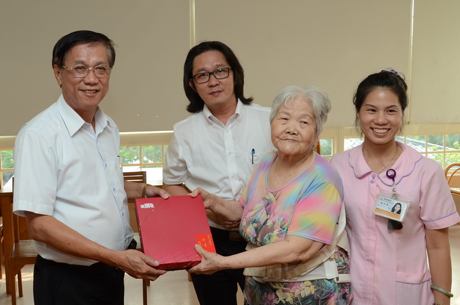 中秋佳節將屆,縣府一連3天慰問委託安置之低收入戶、中低收入戶、遊民及兒少院民,22日首日縣長林明溱在社會及勞動處副處長賴瓊美等人陪同下,陸續前往財團法人南投縣私立傑瑞老人安養中心及群策大愛護理之家等2家社會福利及照護機構,致贈慰問金、柚子及中秋禮盒,受到院民熱烈歡迎。 林縣長除感謝社福機構服務人員及志工平日提供專業照顧之辛勞外,也預祝院民們中秋愉快。他表示,年長者在社福機構細心完善的照顧下,讓他們開心過生活,精神也相當飽滿,使子女無後顧之憂,安心打拼事業。 目前全縣收容低收入戶、中低收入戶、遊民及兒少院民機構計41家,服務對象包括老人、身心障礙者、罹患長期慢性疾病失能長期照顧者等。此次中秋節關懷受助對象計有1,483位院民,每人核發新臺幣600元慰問金,總計核發88萬9,800元,並致贈中秋月餅禮盒,院民拿到林縣長發放的慰問金及禮盒,都感到相當窩心與感動。 社會及勞動處表示,縣府逢年過節,結合社會各界關懷力量,募集各項民生物資、經費,將愛心善舉散播到社福機構等團體,縣府也感謝各安養機構與社團平日協助公部門從事社會福利工作,希望未來能凝聚更多社會愛心,共同關懷弱勢族群,使愛的能量充滿各角落。 林縣長一行首先到傑瑞老人安養中心,該中心年長者熱烈歡迎林縣長,並與林縣長一同在柚子上彩繪、寫上祝福話語及簽名,林縣長也一一欣賞每位院民所畫與寫的柚子,直呼大家畫得很棒!林縣長也與長者拿著彩繪完成的柚子合照留念。 林縣長第2站來到位於草屯的群策大愛護理之家,與院民一一握手致意,林縣長也鼓勵大家多運動,養好身體,並叮嚀長者若感到不適,應立即通知護理人員。當日還有該機構與群力康復之家每年辦理的園遊會活動,現場有需多攤販擺攤,讓院民及附近民眾一起同樂,場面相當熱鬧。