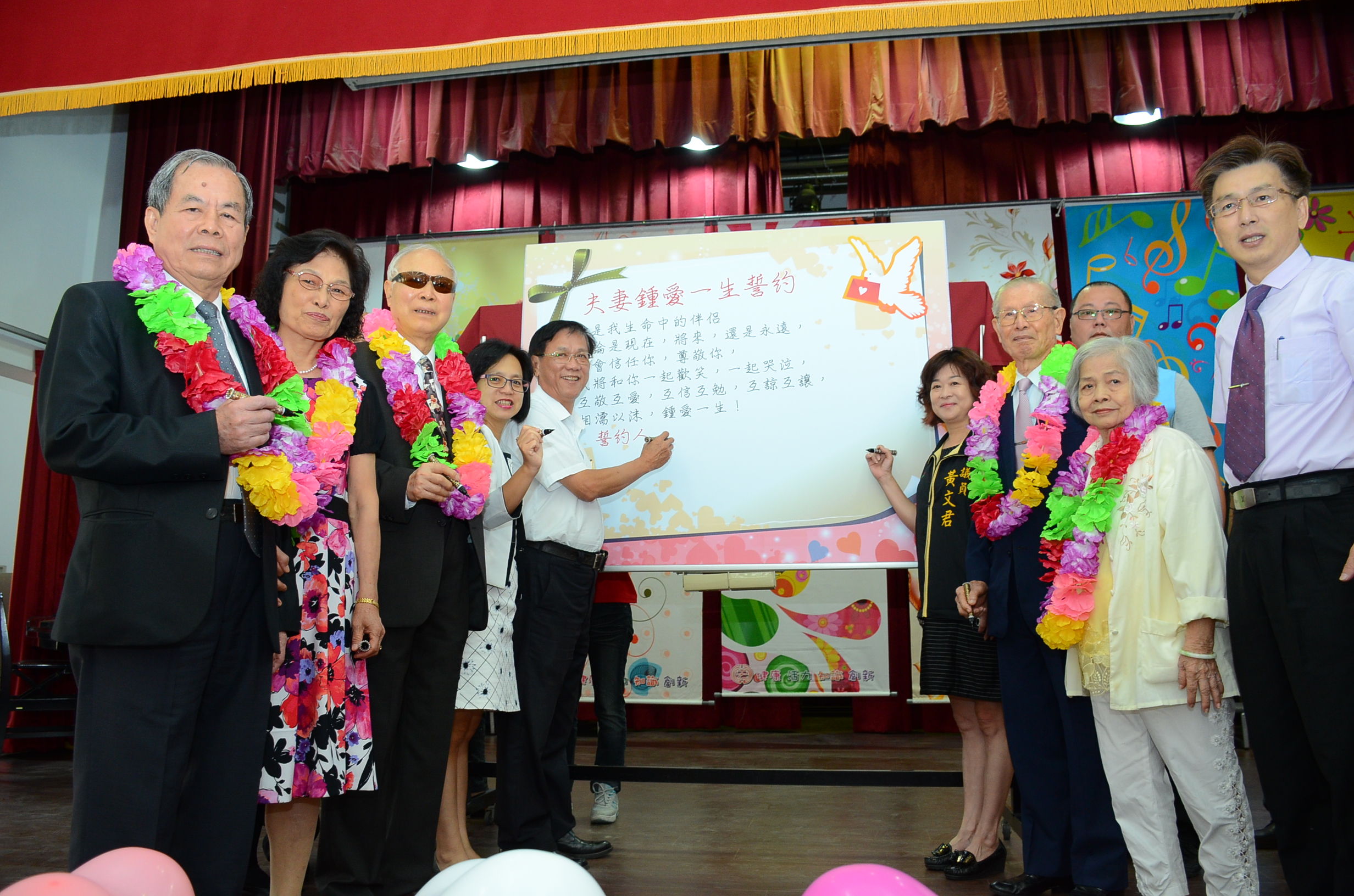 11月22日初冬日光照得各處暖洋洋,就如在草屯國小大禮堂內,6對幸福夫妻也洋溢著幸福氛圍,他們用愛相互扶持,度過數十載寒冬…。 這裡是22日上午,「1122遇見幸福─第15屆婚姻節『愛您久久』系列活動」現場,縣長林明溱、縣府教育處長彭雅玲,議員黃文君等貴賓皆出席,陪同6對白髮佳偶緩緩步入會場。林縣長並頒發「幸福家庭楷模」獎狀予出席夫妻,願他們的美滿婚姻成為年經人楷模。 林縣長表示,「婚姻節」活動是第一次在中部舉辦,並邀請南投縣、彰化縣及台中市的模範夫妻共同參與,分享他們維持幸福婚姻秘訣,這是很好的經驗傳承。婚姻品質要好,就要做到「愛情五到」,就是「眼到」、「耳到」、「口到」、「手到」及「心到」,藉由眼睛專注在對方身上,有意見時要多頃聽溝通,對配偶要多說讚美的話,每天記得要用手擁抱,最重要的,是要有感恩的心,感謝對方陪伴自己走過這多年歲月。 林縣長強調,夫妻之間難免都會因意見不合吵架,但是做先生的,應該多體恤太太辛苦,幫忙家務。他就以自己為例,如果家裡有事情要做,他一定會主動去做,而非等太太要求。自然而然,太太就會感受到他為家庭付出的心意,家庭氣氛就會和樂。他的大兒子也在家庭氣氛影響下,每天下班後,一定會主動協助照顧4個孩子,從來不嫌累,夫妻互相體諒,人生的路才能走得久長。 活動由草屯國小管弦樂合奏揭開序幕,隨後由南投縣南投市客家協會演出「客家迎親」舞蹈,活潑有趣的迎親隊伍,吸引眾人目光。出席的6對佳偶於大家見證下,在「夫妻鍾愛一生誓約」板留下簽名,承諾「互敬互愛、互信互勉、互諒互讓」,並鍾愛一生。 最後,出席夫妻檔並分享婚姻相處之道。86歲的吳漢彬老先生與85歲妻子林麗卿已攜手共度62個年頭,雖然最初是經由相親認識才交往的,但比自由戀愛的年輕人還甜蜜,結婚以來幾乎都沒吵架。吳老先生表示,他一輩子從事公職,在省府服務多年工作相當忙碌,幸好有這樣的「好牽手」幫忙照顧家庭,才讓他沒有後顧之憂。吳太太聽了,只是靦腆地微笑說:「我們從來不吵架啦,有事可以講啦。」幸福之情溢於言表。 教育處表示,「第15屆婚姻節」是由南投縣、彰化縣及台中市3縣市政府、3縣市家庭教育中心及台灣國際幸福家庭促進會共同主辦,該活動以往都是在台北市辦理,今年首次在中部舉行,特別邀請中彰投3縣市幸福家庭參與。「1122遇見幸福」即是指「1」個人遇到另「1」人,然後共組雙雙對對(「22」)的幸福家庭。該活動希望能讓年輕伴侶從中學習婚姻幸福之道。