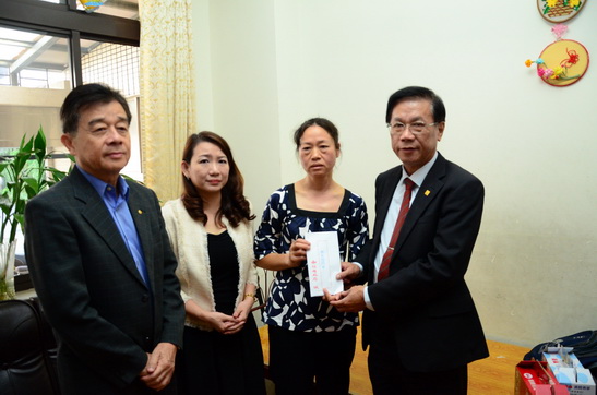 住於中興國中附近的新住民管淑妙父親因病逝世,因其經濟困難無力支付父親的住院醫療費及喪葬費,縣長林明溱23日上午在縣府社會及勞動處長林俊梧與縣議員羅美玲陪同下,前往其家中慰問,並致贈3萬元慰問金,並請社會及勞動處同仁協助申請其他救助。