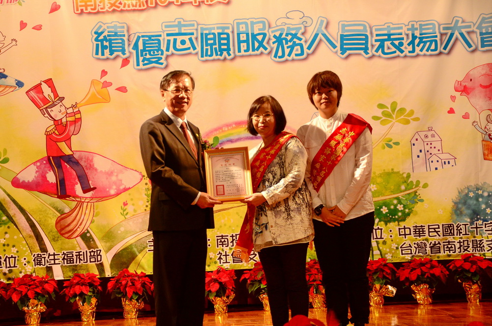 縣府配合衛生福利部「祥和計畫」及響應2015年國際志工日,12日於縣府地下2樓大禮堂舉辦104年度績優志願服務人員、績優志願服務團體及模範志工家庭表揚活動,縣長林明溱在縣府秘書長方信雄與社會及勞動處長林俊梧陪同下,特別到場肯定及感謝縣內志工,並盼更多民眾投入志工行列。 林縣長感謝所有志工無私且熱心奉獻,在崗位上默默付出,他表示,許多民眾以志工身分,志願且不領薪服務大眾,尤其民眾到公部門洽公,志工們都會引導他們到各科室,以利辦理申請案件等。未來希望有更多民眾加入志工團隊,將本縣打造成幸福、美滿及祥和的環境。 會中,林縣長首先頒獎表揚在縣府消防局服務超過10,000小時的志工李慧珍。隨後,由3位美少女帶來熱舞及中東肚皮舞表演,為活動暖場,現場還有精彩川劇變臉表演,變臉表演者還邀請方秘書長上台協助神奇的變臉,頓時吸引全場目光,方秘書長雙手一動,表演者的臉瞬間由黑色變成白色面具,全場一片掌聲歡呼。 方秘書長陸續頒發衛福部績優志願服務人員3名(8,000小時以上)、本縣績優志願服務人員492名(500小時以上),分別頒給金、銀、銅質獎章及得獎證書,另也表揚本縣績優志願服務團隊,包括南投市營南社區發展協會、埔里鎮籃城社區發展協會、埔基醫療財團法人埔里基督教院、救國團南投縣工商青年社會服務隊等4個團隊及鄭麗卿、張竹林、賴文貴等3個模範志工家庭。 縣府表示,透過績優志願服務人員表揚活動,激勵志願服務人員服務士氣,宣導志願服務之精神及理念,使更多民眾投入志願服務行列,共同為南投縣志願服務工作努力付出,讓我們的社會更美好,更祥和。縣議員賴燕雪、國史館台灣文獻館專門委員林明洲也到場共襄盛舉。