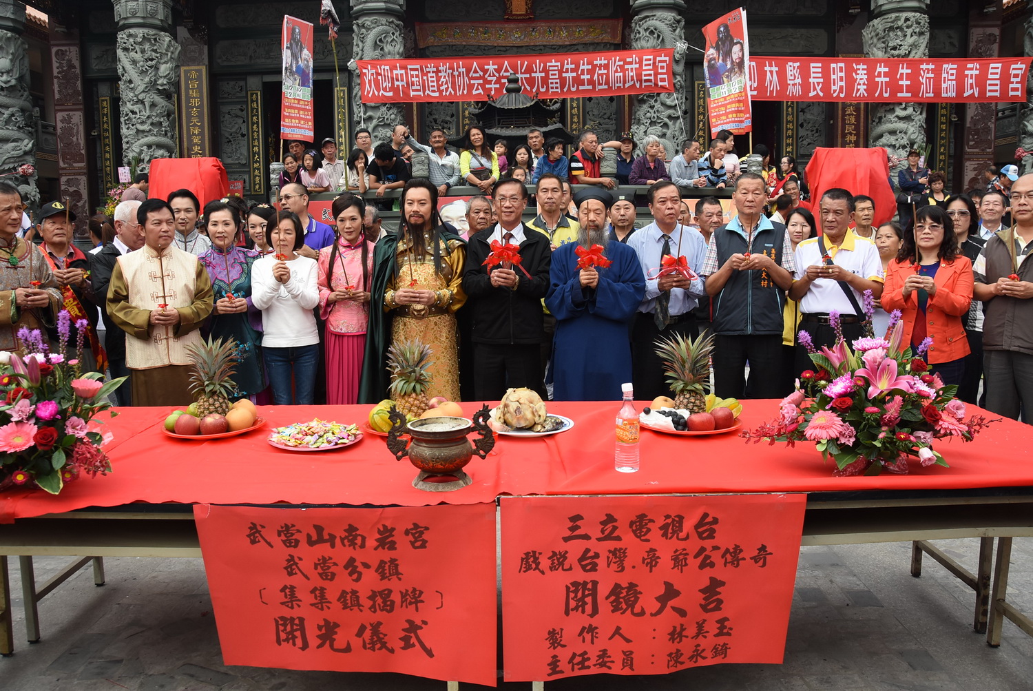 三立台灣台〈戲說台灣〉帝爺公傳奇12月12日下午在集集武昌宮開拍,吸引大批民眾圍觀拍照,縣長林明溱、中國道教協會會長李光富等也都一起上香祈福,現場相當熱鬧。