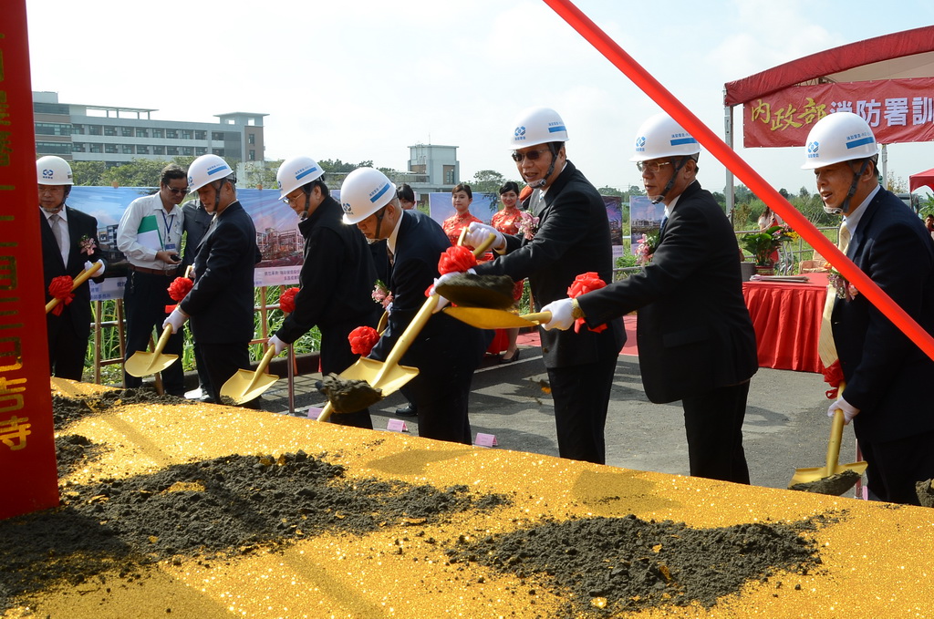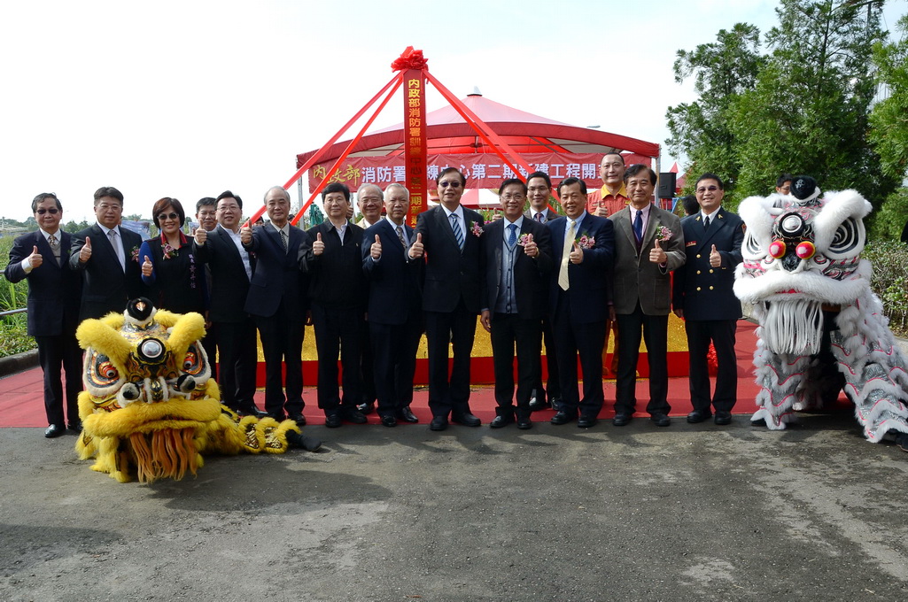 內政部消防署訓練中心12日舉辦廳舍第二期新建工程開工典禮,部長陳威仁、縣長林明溱、消防署署長葉吉堂及營建署副署長童健飛等到場,為工程開工祝禱,祈願動土順利、工程圓滿。