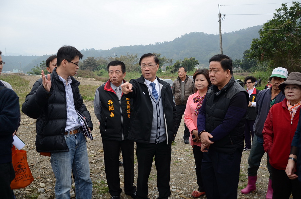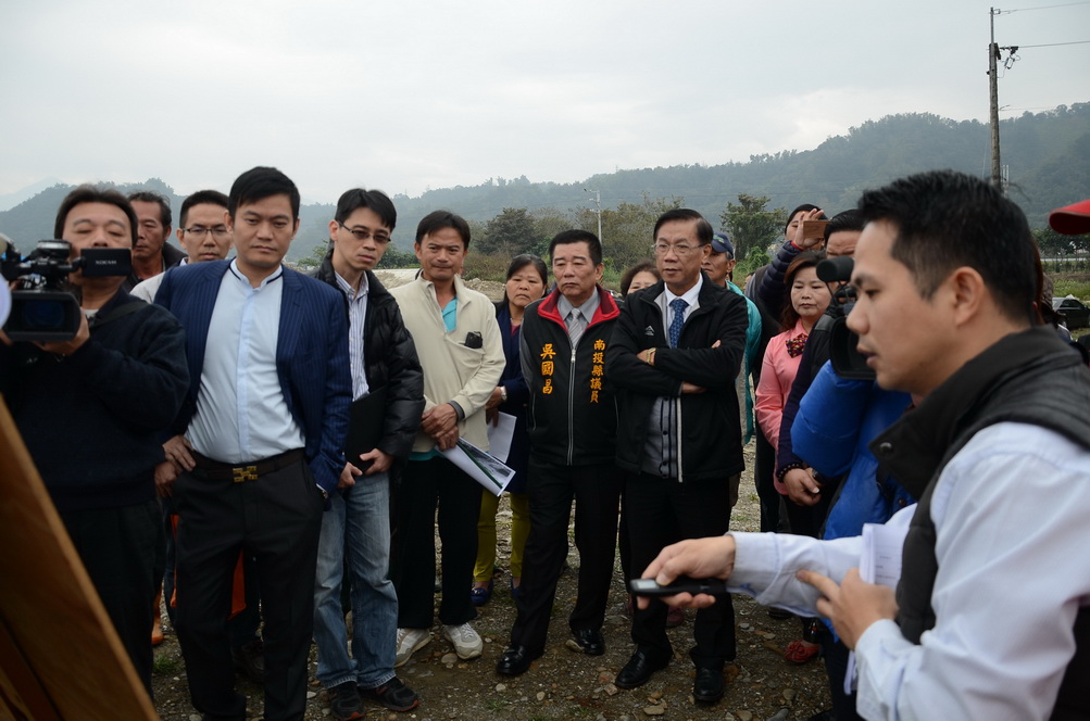 縣長林明溱21日在副議長潘一全、議員吳國昌、王彩雲、許阿甘、廖志城、林芳伃及鎮長周義雄陪同下,前往埔里鎮愛村橋了解該橋及南烘溪堤防現況,由於該橋長度不足,第三河川局施作臨時堤防較靠近溪流,造成流域狹窄,民眾擔心大雨造成溪水暴漲而水淹至其土地及危害通行安全,林縣長指示工務處儘速發包施作延伸橋樑。 林縣長表示,將向水利署爭取約4千萬補助,加上縣府自籌5千餘萬,共計投入9,300餘萬元延伸闢建愛村橋,未來橋樑工程完竣後,第三河川局便能繼續施作堤防,讓河水流域較寬敞,如大雨來襲,河域仍能容納流水,民眾土地及道路也能免於溪水沖刷可能性。 該橋延伸闢建工程除將既有橋樑延伸外,加上預力箱型樑橋,將從南烘溪南側引道抬高4米,延伸橋樑寬度與原橋樑寬度皆為10米,預計工期約1年4個月,需施作經費約9,315萬餘元,另將徵收橋樑旁私人用地,以利工程進行。 隨後,林縣長一行前往雙吉路會勘,該路部分路段縮減,雙向來車交會不利通行,林縣長指示工務處研議將道路拓寬,並將爭取經費改善。